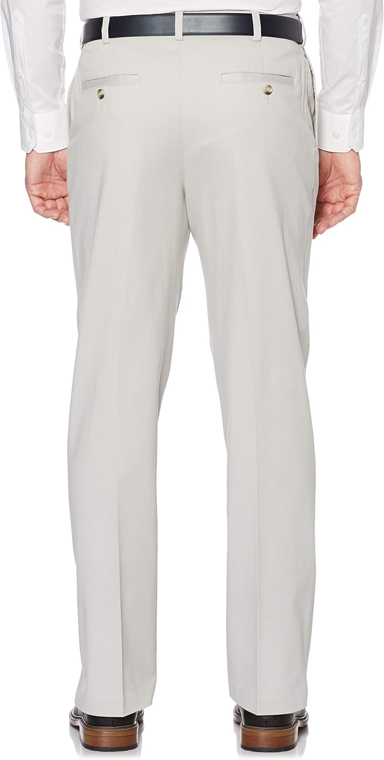 Take your outfit to the next level with these casual chino pants for men. Made up of cotton material with a hint of stretch and a waistband that can expand up to 1 ¾ inches, these performance trousers offer soft, flexible comfort so you can move through your day with ease. Twill fabrication makes them lightweight and breathable for easy all-day wear, and they’re non-iron so they stay wrinkle-free ensuring a polished look always. With a classic pleated style and looser straight legs, these comfortable men’s pants provide a modern and clean silhouette that will surely complement your go-to attire.