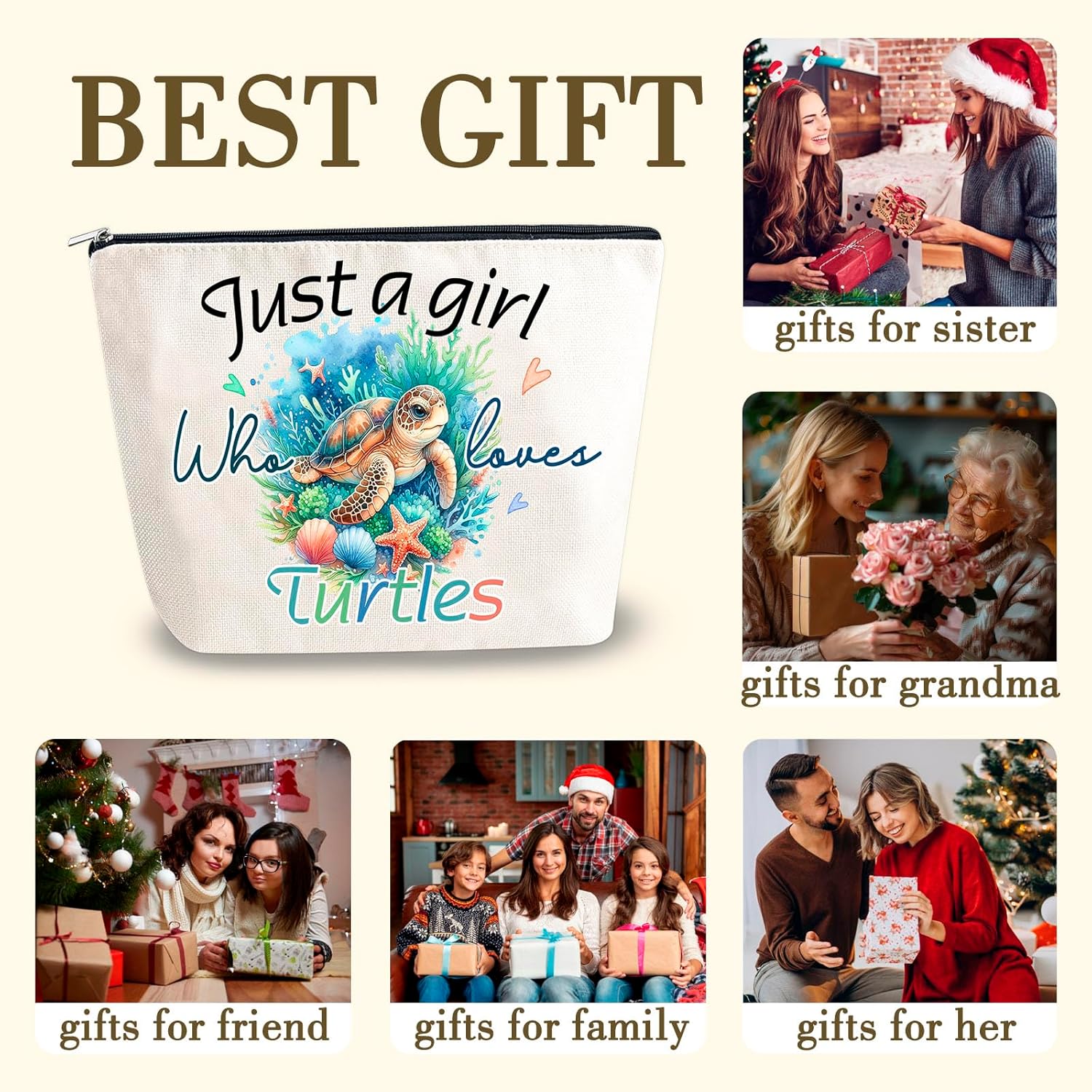 【Sea Turtle Lovers Gift】:This 10″ x 6.3″ x 2.6″ makeup bag features the heartwarming text “Just A Girl Who Loves Turtles” and charming sea turtle illustrations, making it a meaningful gift that celebrates her connection to the ocean. Turtle Gifts For Women Use it as a cosmetic organizer, gym bag, or travel companion—perfect for beach trips or daily adventures!