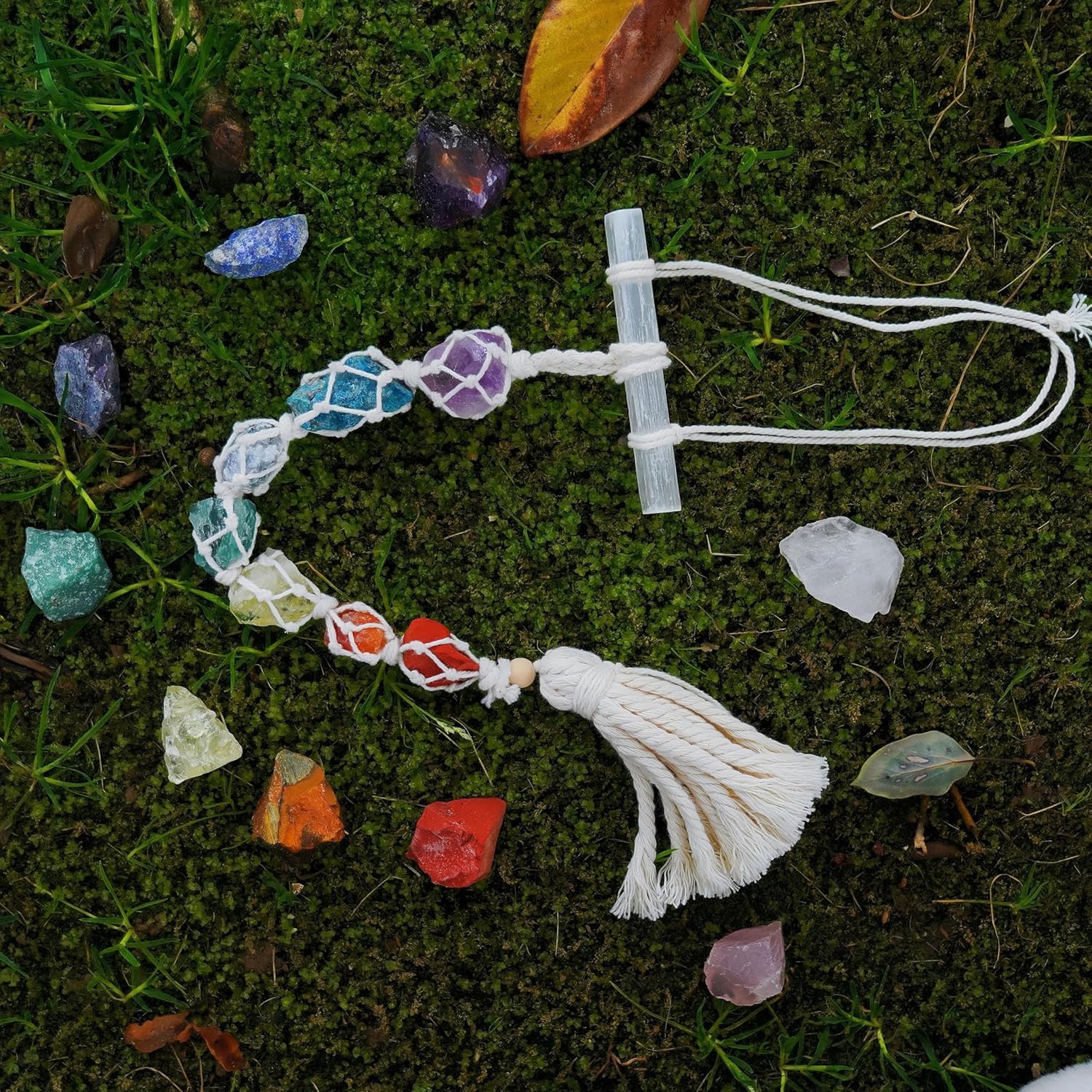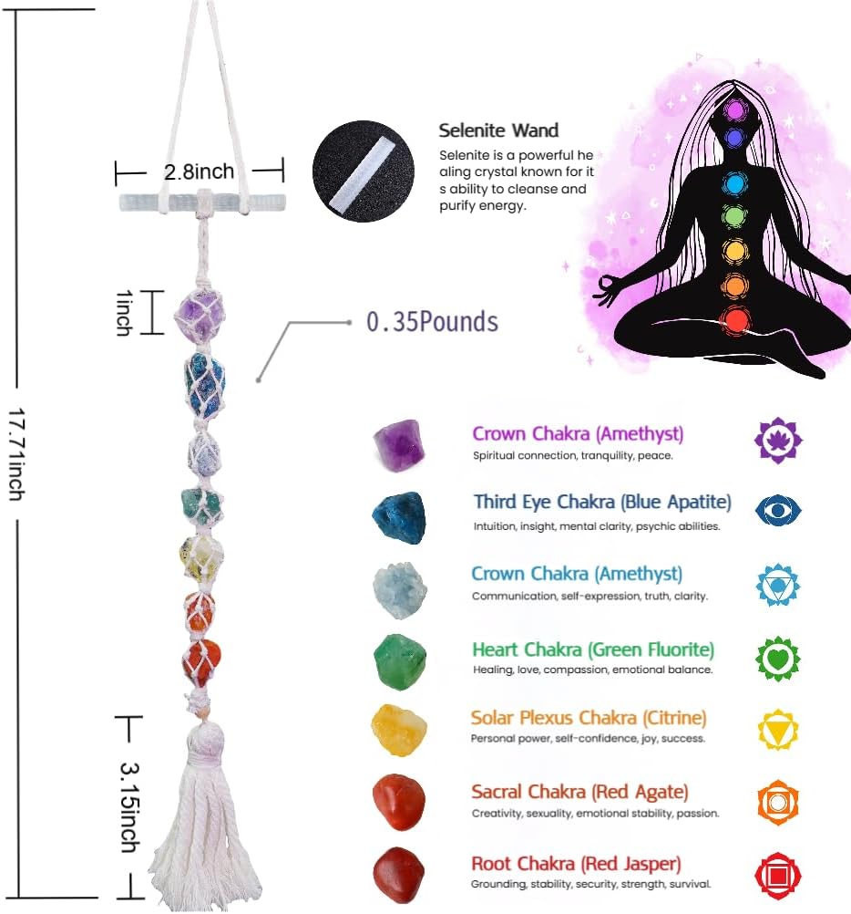 This handmade large 7 chakra hanging crystal wand features raw selenite sticks and natural healing gemstones, making it perfect for chakra balancing, energy alignment, and boho wall decor. Designed for spiritual meditation, yoga, and reiki, each raw stone aligns with a chakra to promote harmony, clarity, and emotional healing. Whether in your bedroom, yoga room, or as part of your spiritual altar, this piece radiates calming energy and hippie charm. It’s an ideal gift for women, girlfriends, mothers, or kids on birthdays, Christmas, or any special occasion. Thoughtfully crafted, it blends aesthetic beauty with deep spiritual meaning. We stand behind our quality and offer easy returns if you’re not fully satisfied.