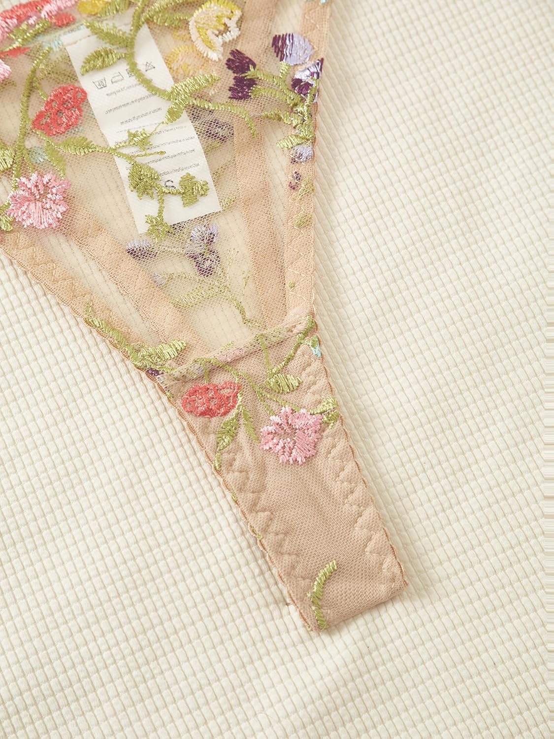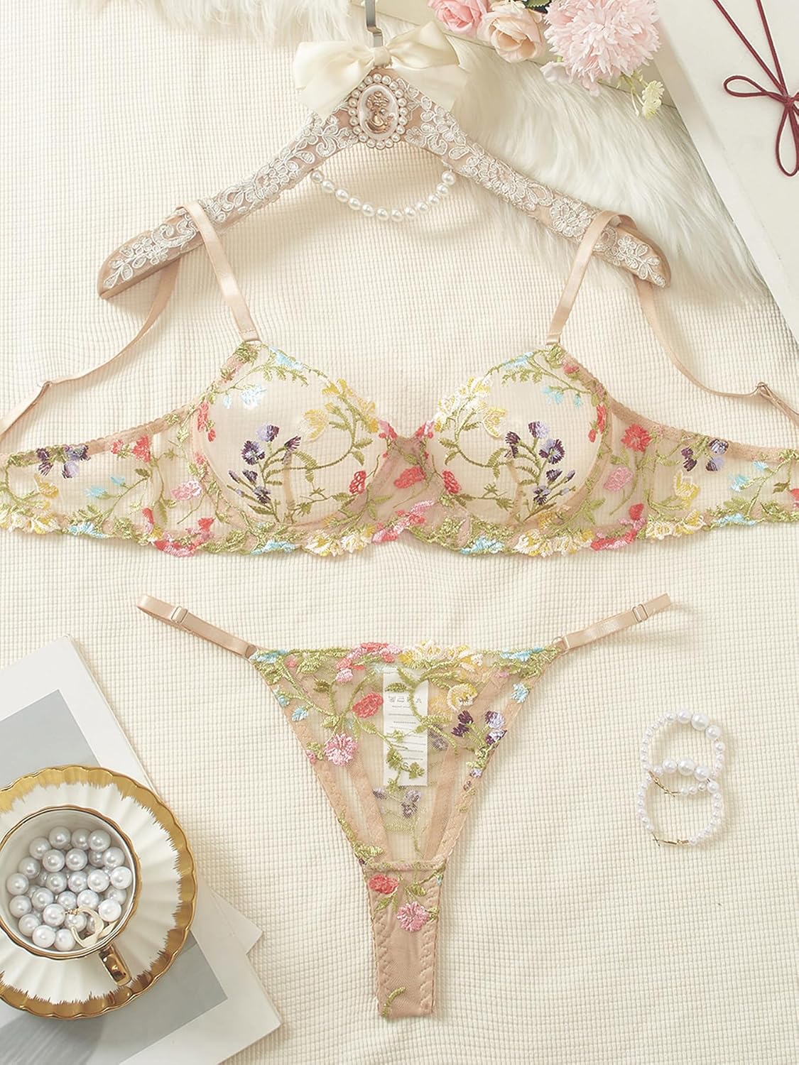 Sexy Floral Embroidered Flower Mesh Underwire Push Up Lingerie Set