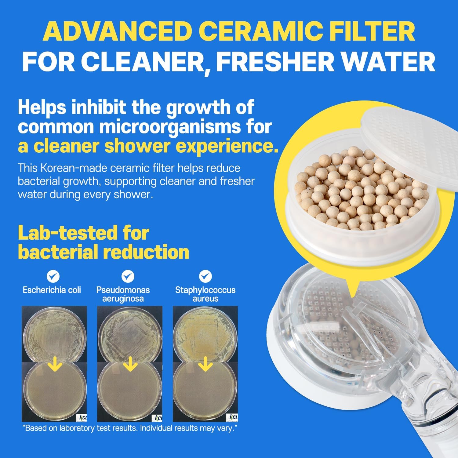 [Technology You Can See 3-Stage Composite Filter System] Backed by science, our advanced 3-Stage Carbon Composite Filter delivers powerful filtration performance: Sediment Layer: Helps clear visible rust and dirt. Compressed Activated Carbon Core, Filters fine particles for clearer water. Ideal for daily use for up to 1 month per filter. Lab-tested to meet international water safety standards. Pure science.