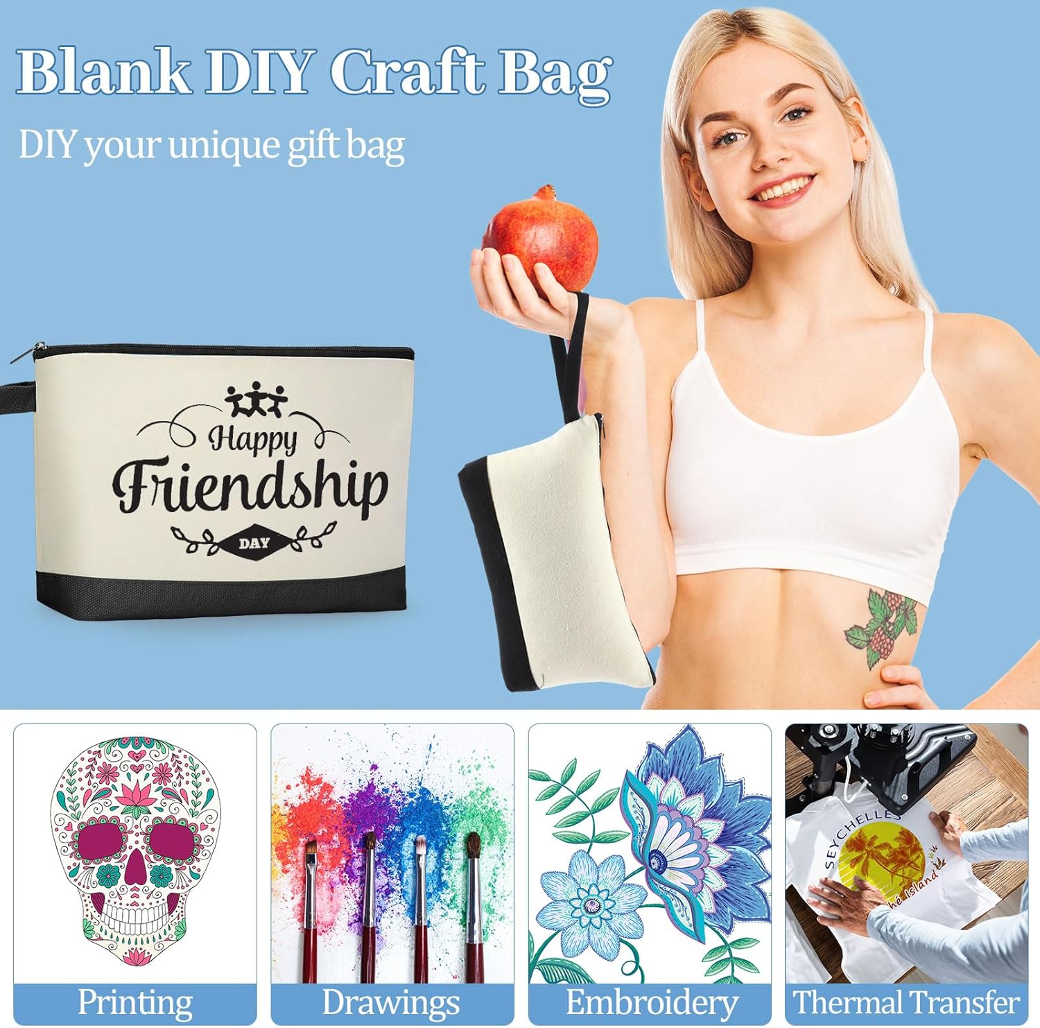 Creative Design: these blank makeup bags offer possibilities for DIY; Ideal for both everyday use and specific occasions, these pouch bags can be decorated with various techniques such as doodling, printing, painting, heat transferring vinyl transfers, heat transfers, or embroidery; Let your creativity shine and create different gift canvas zipper pouches for your loved ones and friends at home or camp