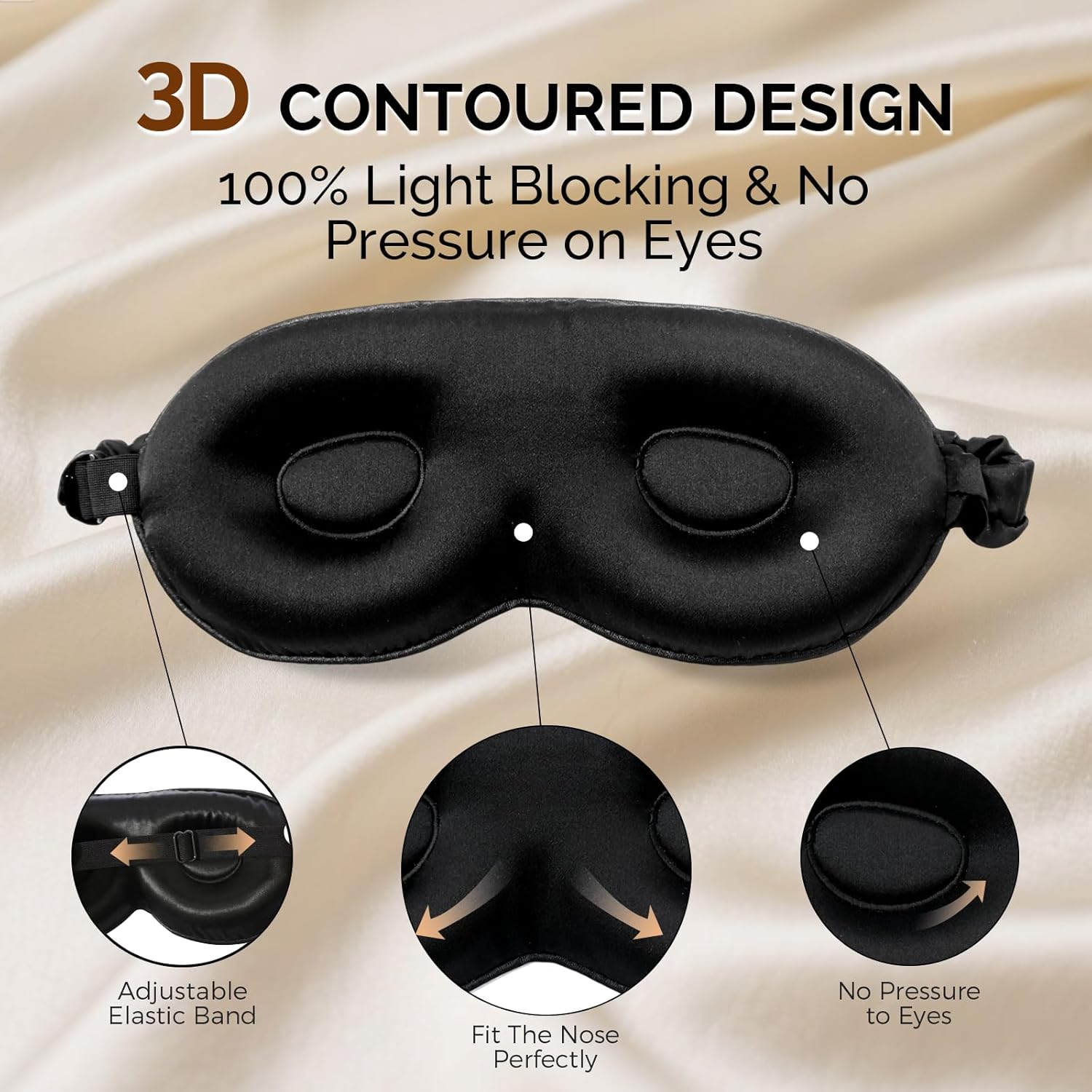 No Eye Pressure & Block Out Light – Engineered with deep 3D eye mask for sleeping, our silk eye mask with eye cups offers ample space for eyelashes and allows effortless blinking. Its ergonomic shape delivers silk sleep mask blackout performance, creating pitch-black darkness to block 100% of light for deeper, uninterrupted rest anywhere.