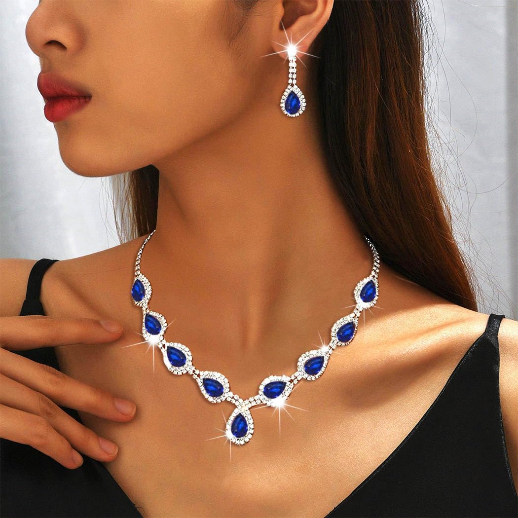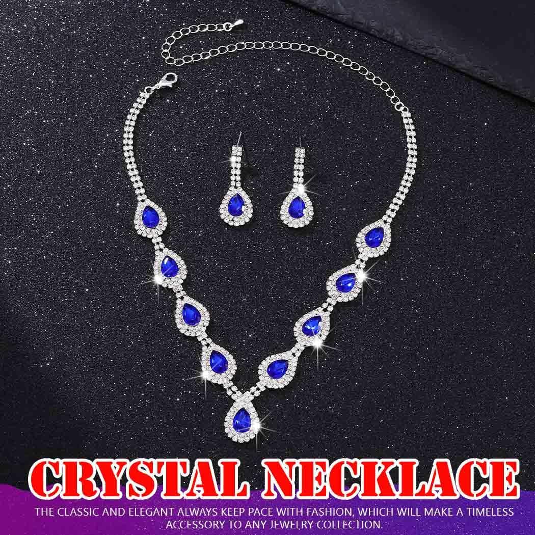 Sixexey Crystal Bridal Wedding Jewelry Set Silver Sparkly Rhinestone Necklace Earrings Prom Costume Jewelry Necklace for Women