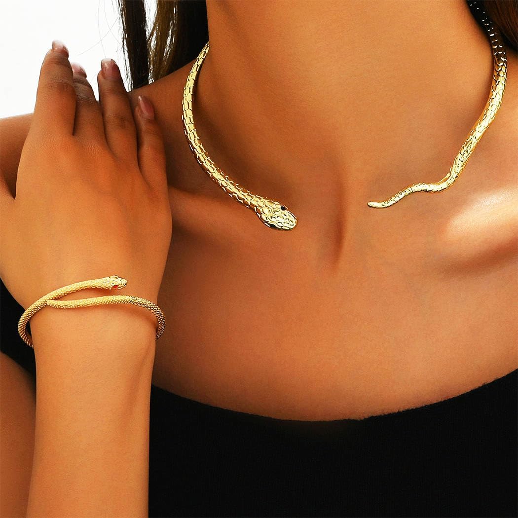 Sixexey Snake Jewelry Set Gold Collar Necklace Earring Halloween Snake Bracelet for Women
