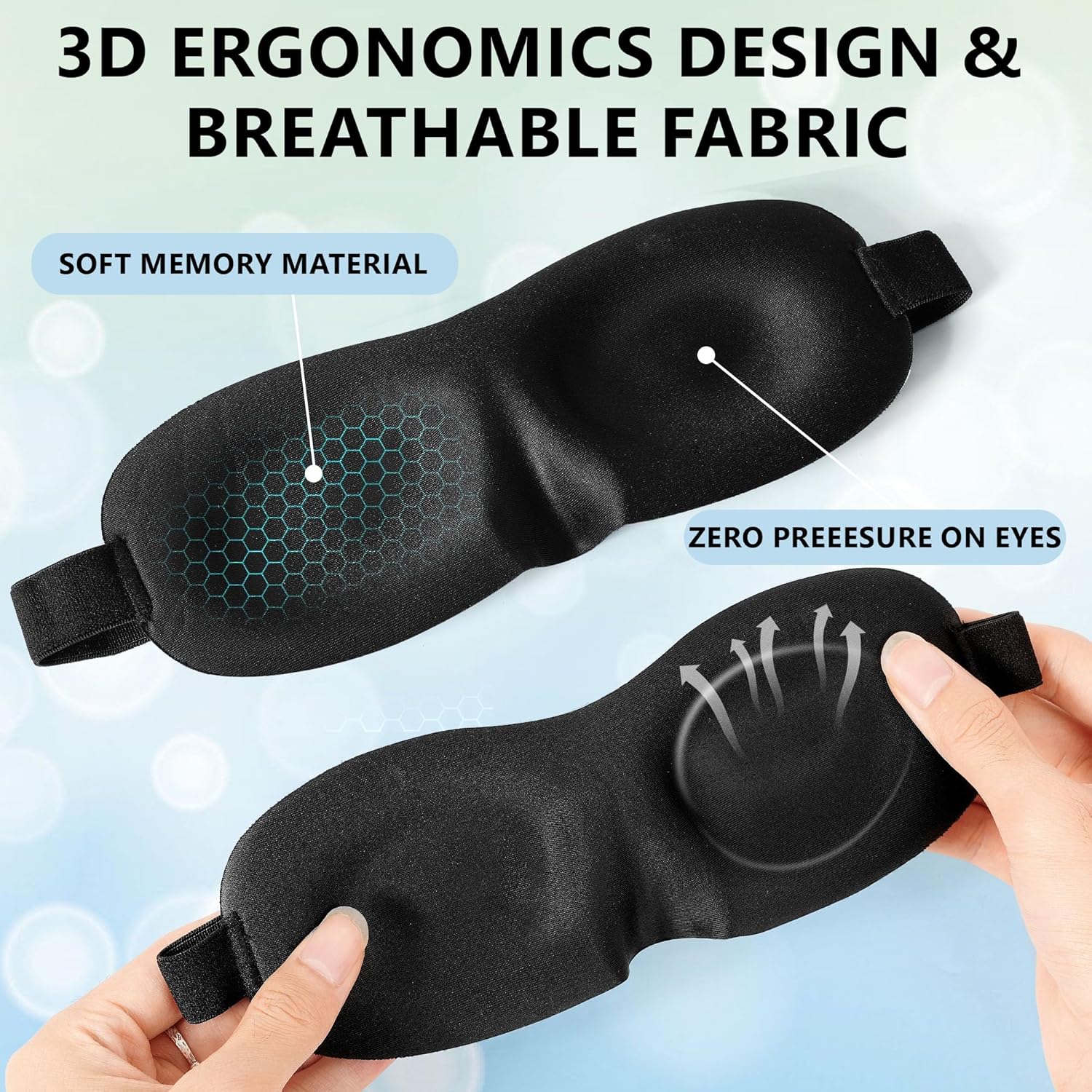 Lightweight Material for Portability: Travel enthusiasts will appreciate the lightweight material used in constructing the sleep eye mask. Weighing only a few ounces, these masks are easy to carry in hand luggage or even slip into your pocket when heading out for short trips