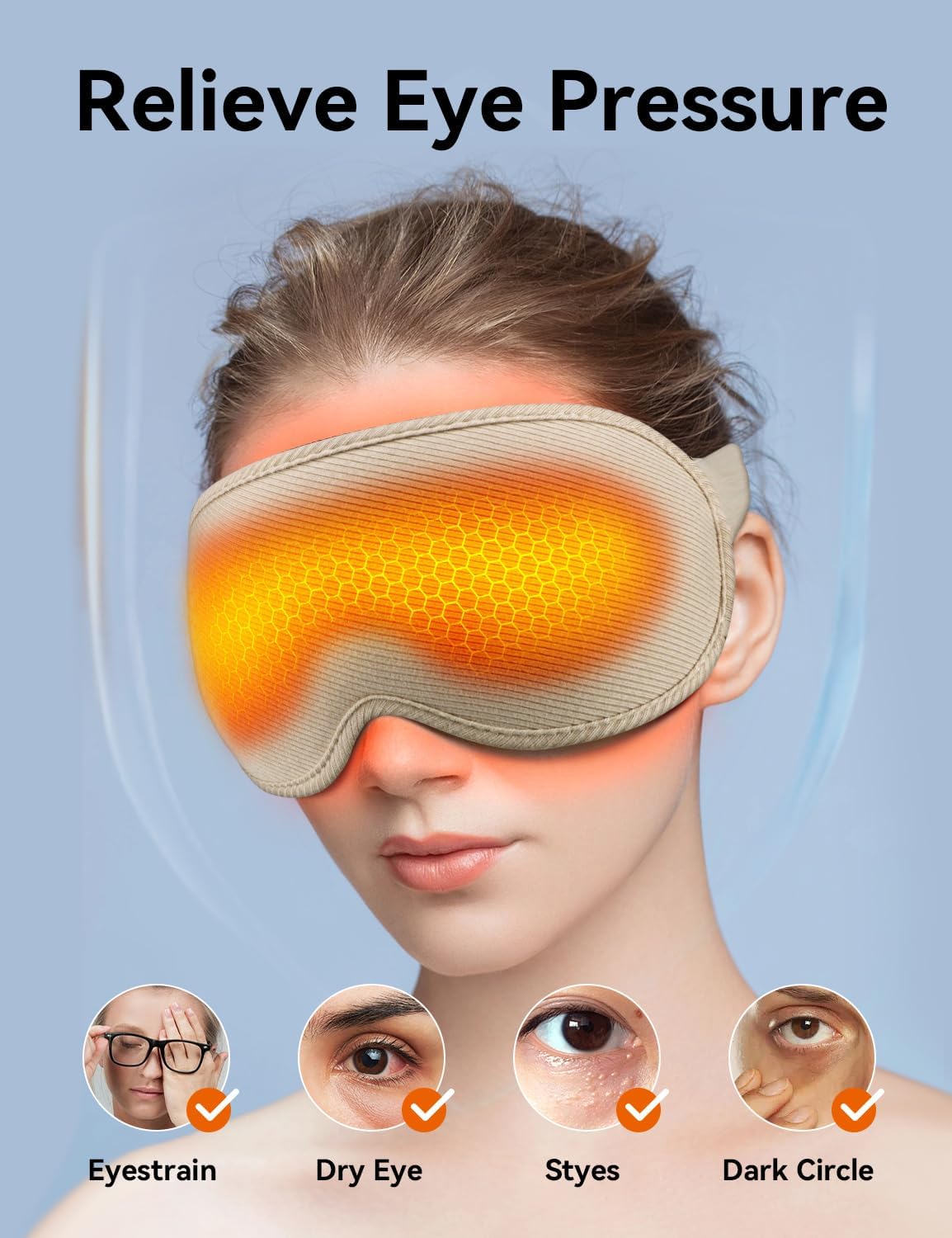 【Enhanced Deep Relaxation】The gentle, evenly distributed heat helps to relieve eye strain, reduce puffiness, and improve blood circulation around the eyes, helping to alleviate eye strain, fatigue, dry eyes, dark circles, and puffiness. EVA BELLE sleep mask is perfect for those who experience tired eyes from long screen time, or for anyone looking to unwind