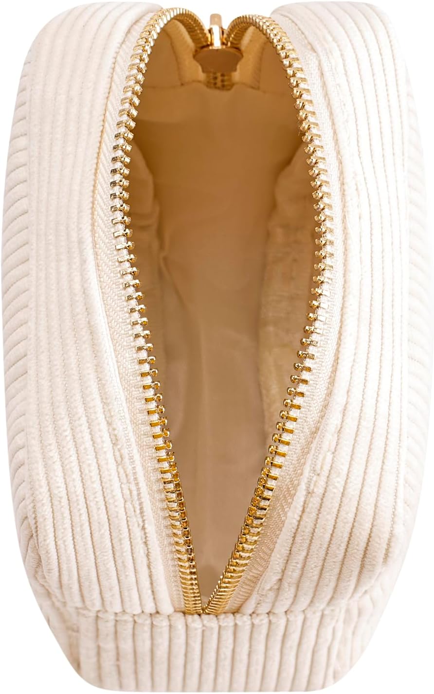 [Lightweight and Durable]: The makeup bag is made of soft corduroy, which is long-lasting and washable. Smooth metal zipper pull gives a chic finish while keeping contents secure.
