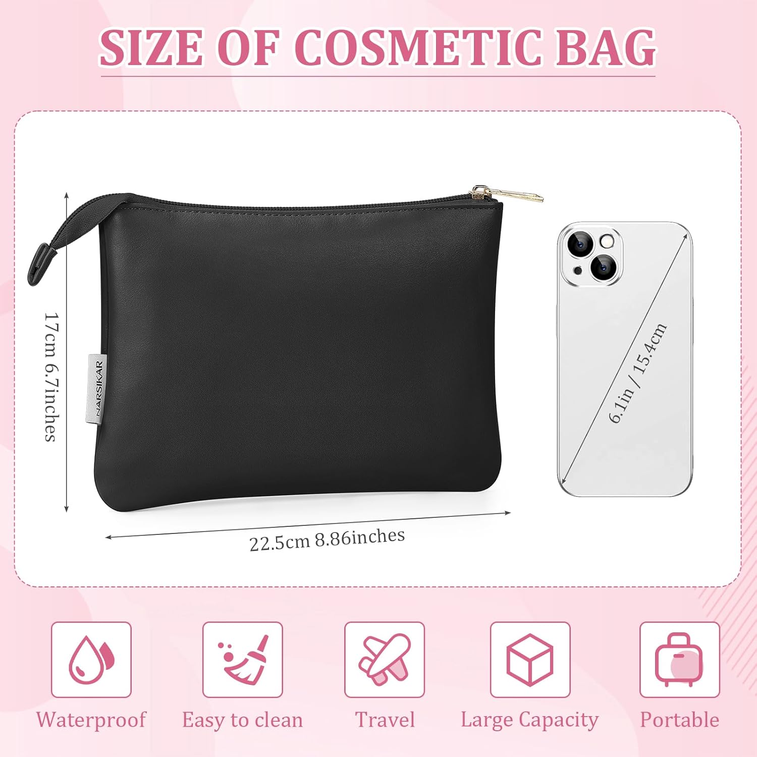 EASY TO CARRY: Our leather pouch is lightweight and easy for you to carry around every day; measuring approximately 8.86x 6.7 inches/22.5x 17 cm, with spacious compartments for makeup brushes, skincare bottles, keys, and cards, you can put it in your handbag or backpack without taking up too much space