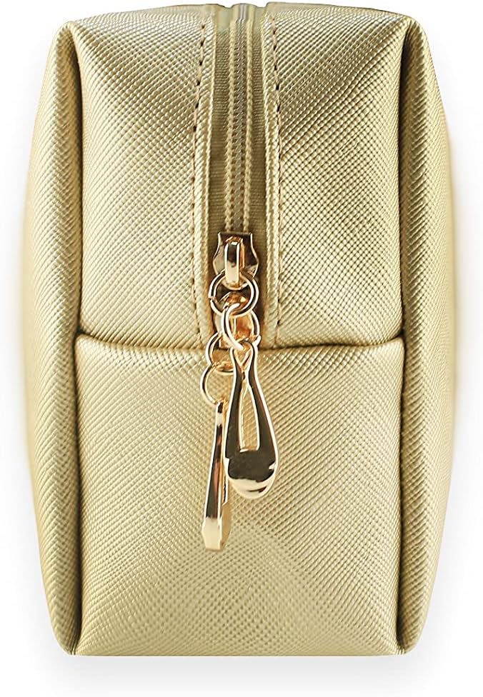 Small Makeup Bag Portable Cosmetic Bag for Women Makeup Pouch Waterproof Toiletry Bag for Travel (Gold, Normal)