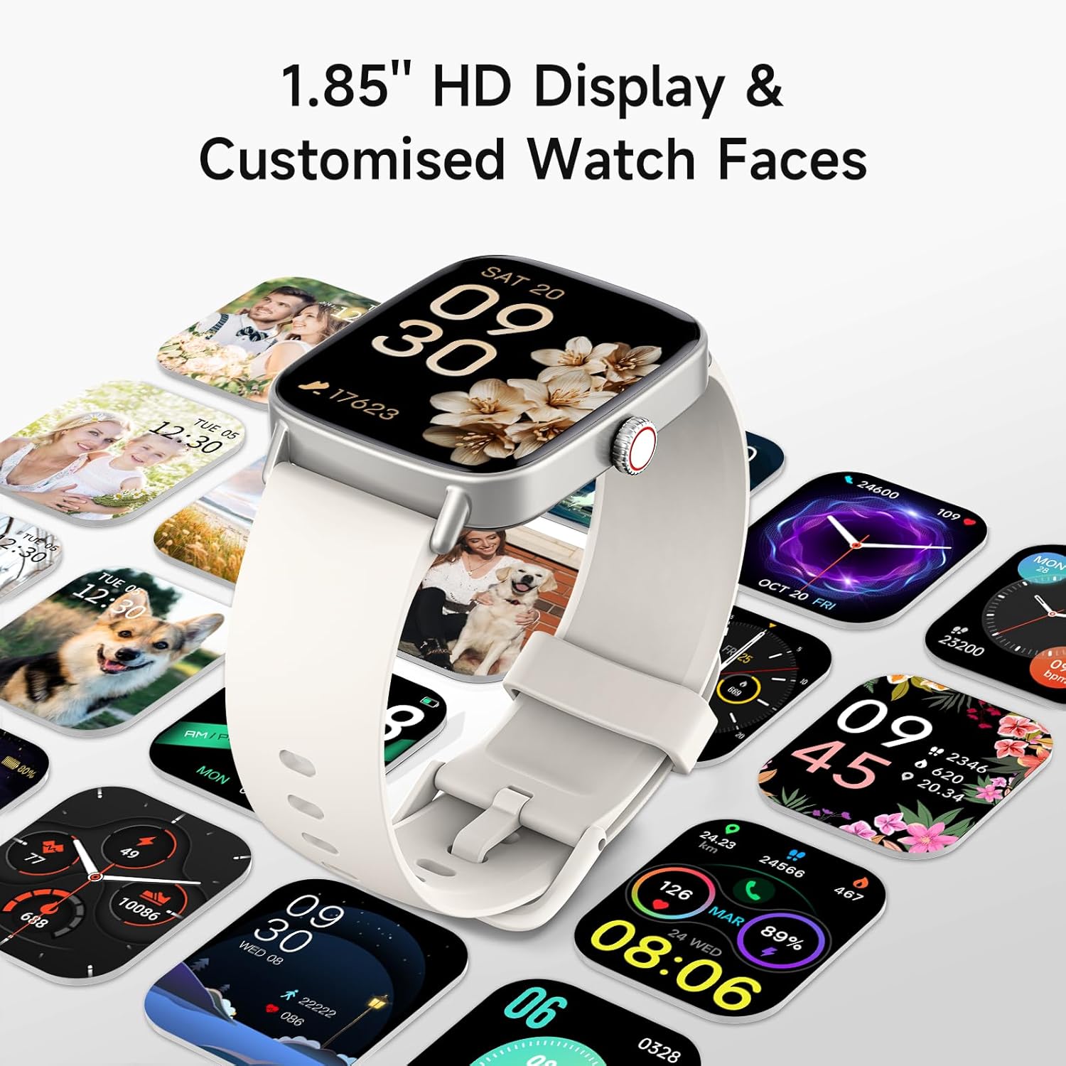 【1.85″ HD Display with 60Hz Refresh Rate】Experience crisp visuals and smooth scrolling on the vibrant 1.85″ HD touchscreen. Plus, you can also upload photos of your family, pets, and scenery to customize a watch face with your own style.