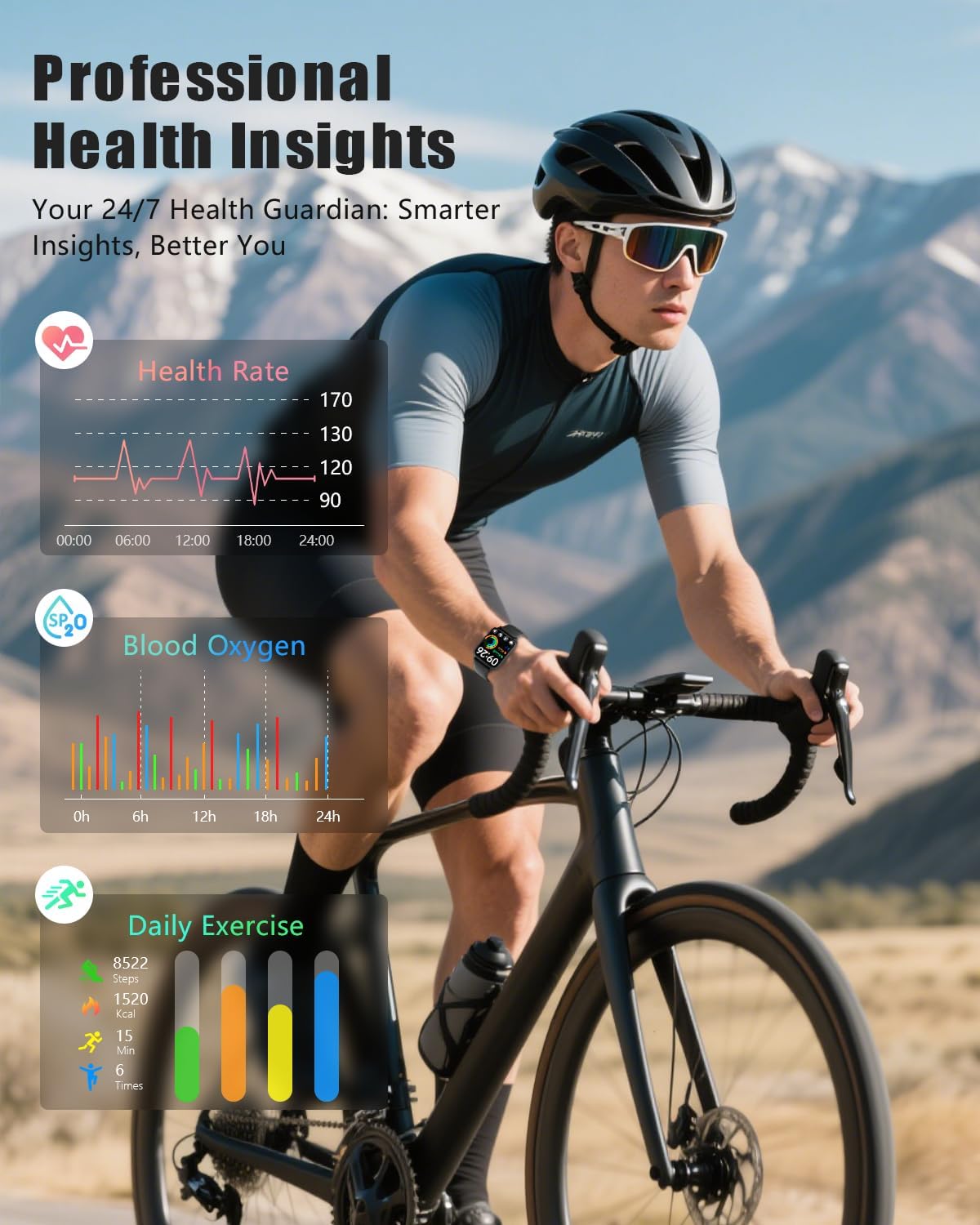 24/7 HealthGuard Advanced Wellness Tracking & Sleep Intelligence ・Continuous heart rate monitoring (5-minute intervals) ・Military-grade SpO₂ sensor with Altitude Mode for hikers/athletes ・Women’s Health Suite: Cycle predictions + fertility window alerts ・Sleep Stage Breakdown: Get actionable tips to improve sleep quality