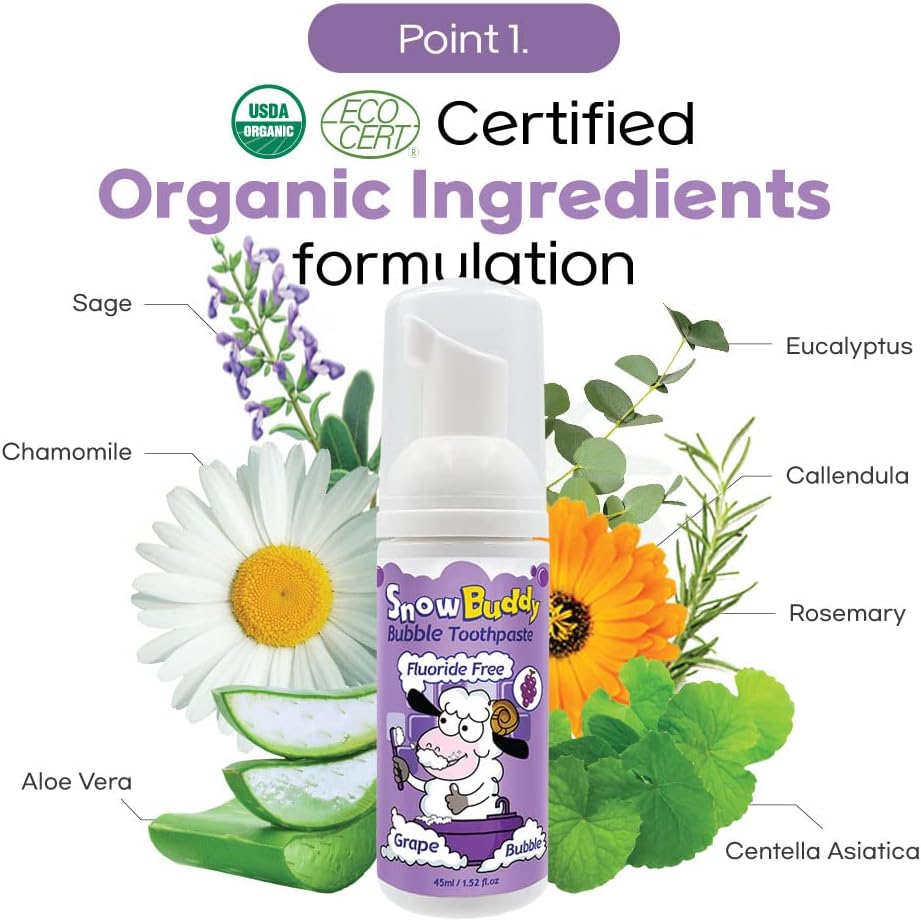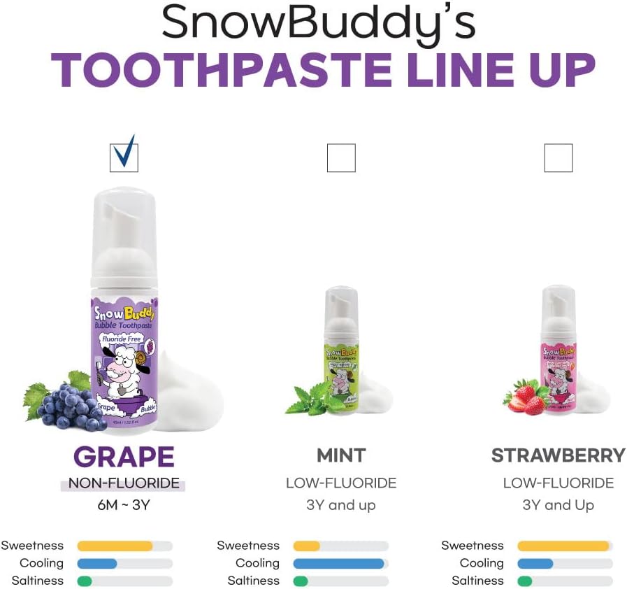 SnowBuddy Foam Toothpaste Kids – Grape Flavors – 1 Pack, Anti Cavity with Fluoride-Free, for u-Shape Toothbrush and Mouthwash for Dental Care
