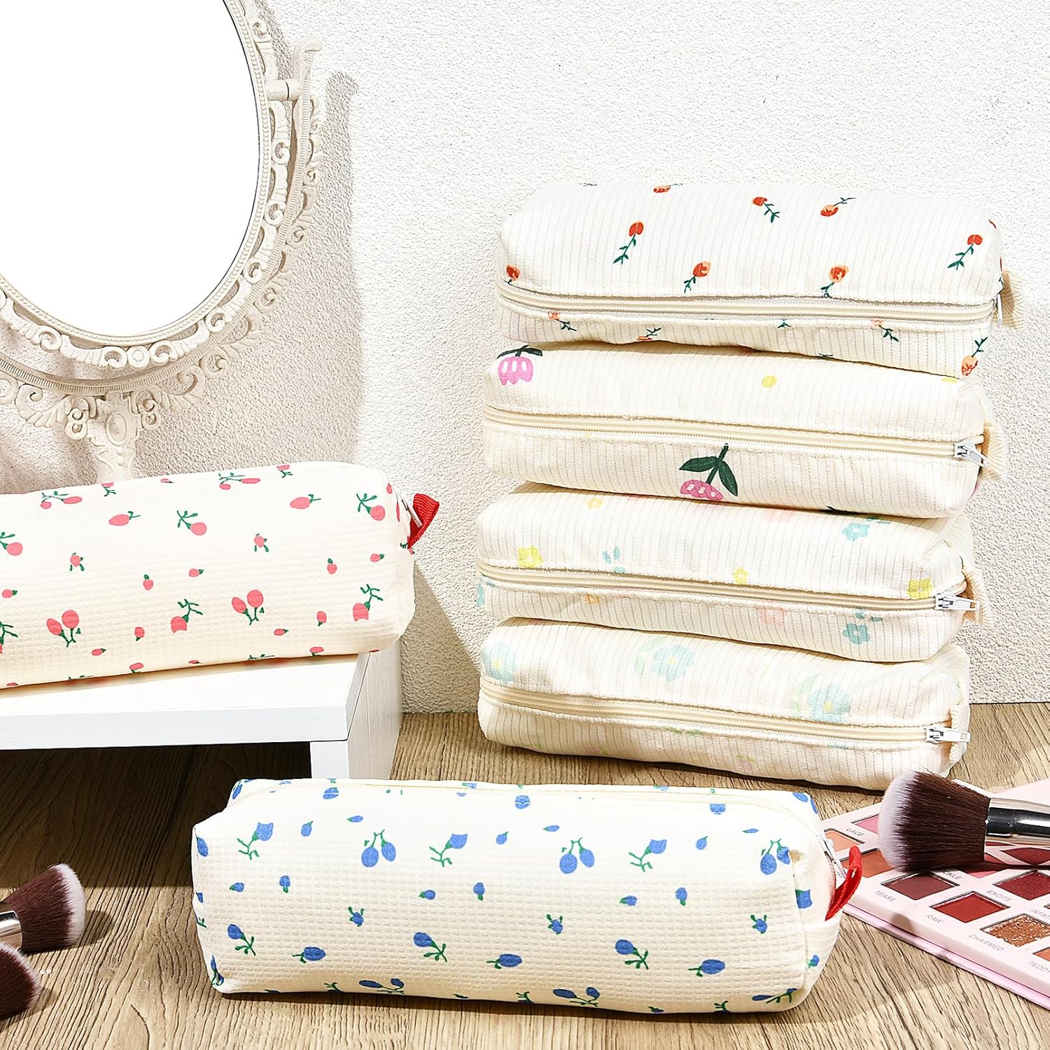 SOIDRAM 6 Pcs Makeup Bag Preppy Cosmetic Bag Bulk Floral Makeup Pouch Personalize Travel Toiletry Bag Organizer Cute DIY Makeup Brushes Storage Bag for Women