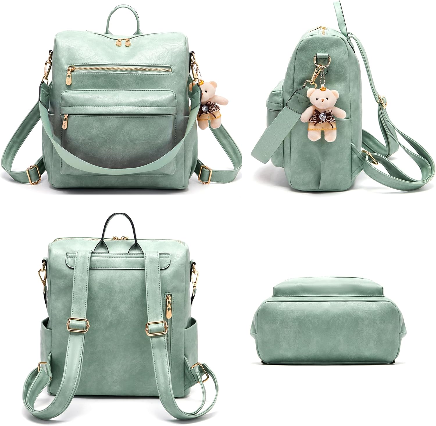 Soperwillton Women Backpack Purse Multipurpose Design Handbags Shoulder Bag PU Leather Travel bag Backpack Set 2pcs