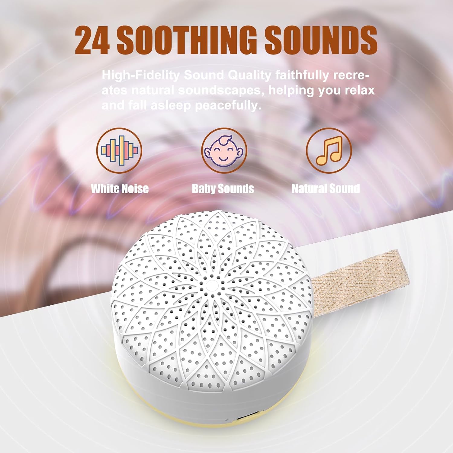 【Soothing White Noise for Deep Sleep】Experience restful sleep with our advanced white noise machine, featuring 24 high-definition sleep sounds including gentle fan, ocean waves, and rainfall. Designed to mask disruptive noises, it creates a peaceful environment for adults, babies, and prenatal care. The adjustable volume and timer (30/60/90/120 mins) allow personalized use for nighttime relaxation, meditation, or nursery soothing. Compact and portable, it’s ideal for home, travel, or office use.