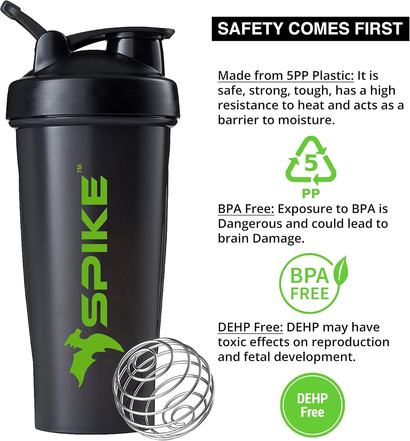 NO LEAK LIDS: The wide mouth bottle cap locks in place to prevent messy spills from happening. Spike Protein shaker bottle is leak proof.