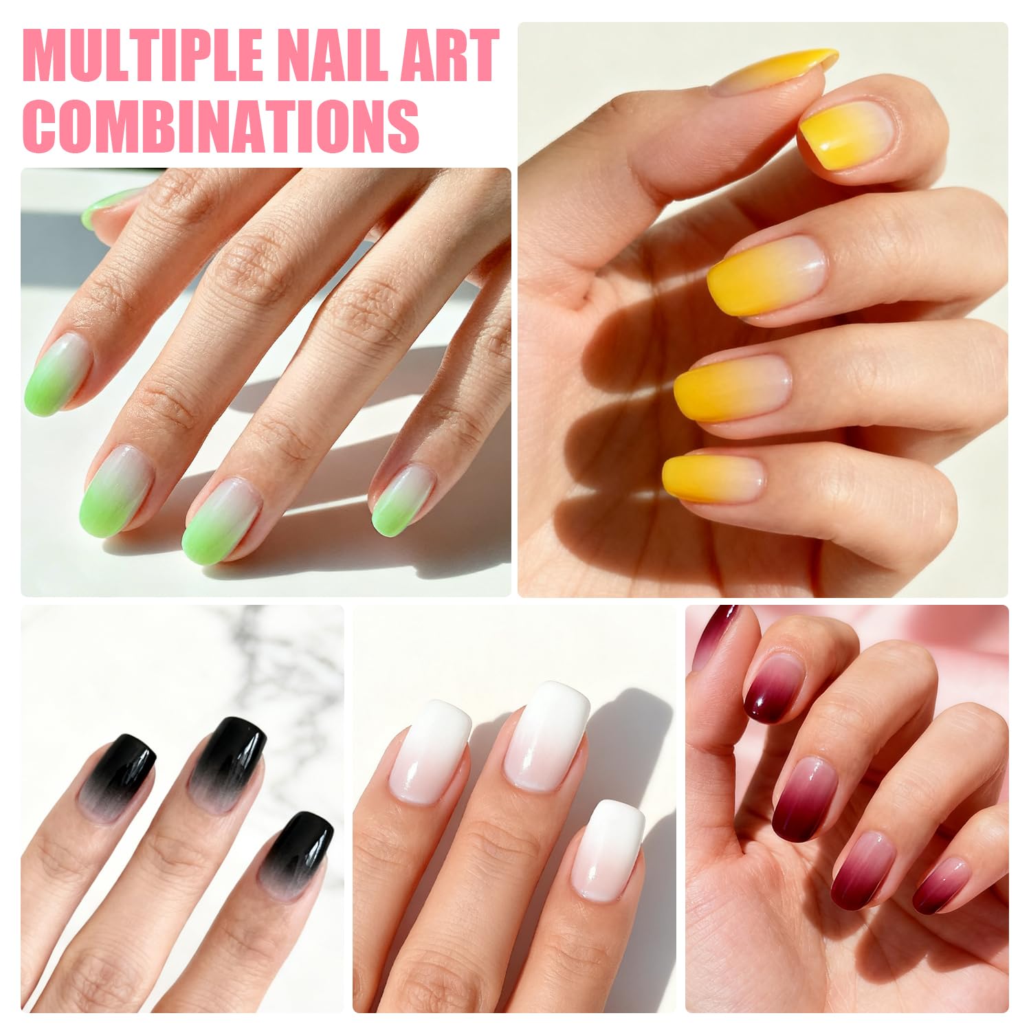 【NOURISH & BEAUTY】Enriched with Castor Oil & Vitamin E, our Ombre Gel Nail Kit delivers stunning nail art while nourishing your nails. The gentle formula is perfect for sensitive nails, helping to prevent breakage, promote healthy growth, and hydrate & protect with antioxidants.
