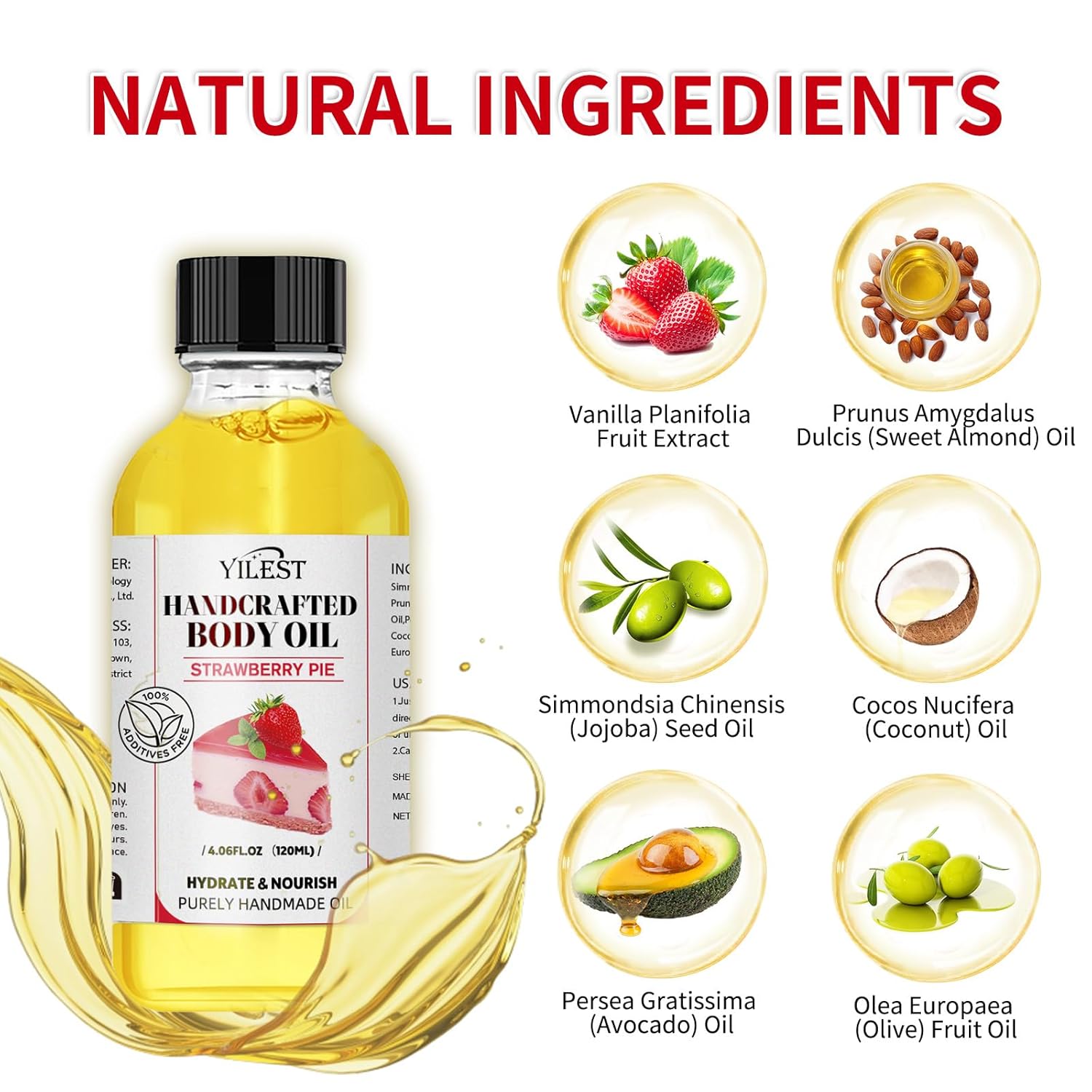 Strawberry Scented Body Oil – Fragrance Moisturizing Natural Blend for Dry Skin (Jojoba, Almond, Coconut Oils) | Nourishing Skin Care Treatment for Women & Men