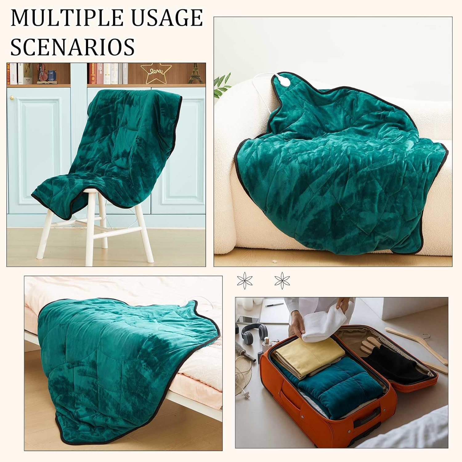 Fashioned from premium cloth material in an elegant dark green hue, this weighted heated blanket blends comfort with style, making it a addition to any living space.