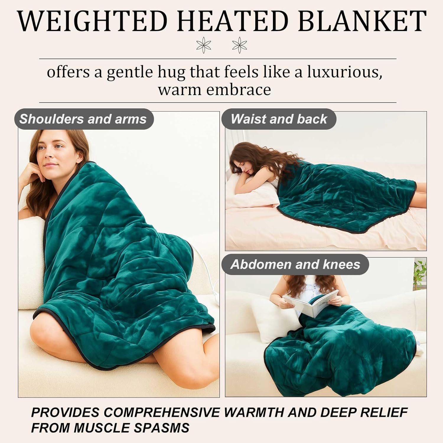 Embrace Tranquil Warmth: The heated weighted blanket in a soothing dark green invites you into a world of relaxation, balancing style and functionality. Sized at 41 x 53 inches, it provides comprehensive warmth and deep relief from muscle spasms. Whether you’re battling simply yearning for a cozy evening, this weighted heated blanket offers a gentle hug that feels like a luxurious, warm embrace