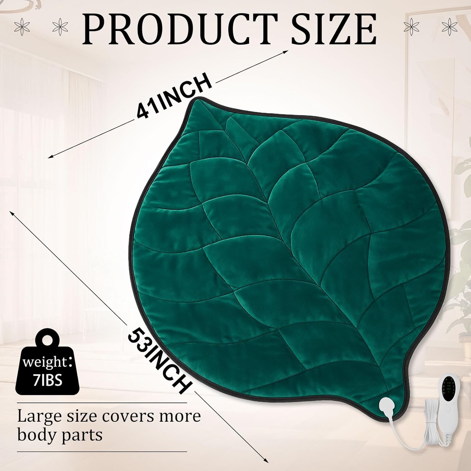 Sumind 41 x 53 Inch Heating Weighted Lap Blanket 7 Lbs, 2 In1 Electric Weighted Heated Heavy Throw Blanket 2/4/8 Hour Auto Off 10 Heat Settings Over-Heat Protection Leaf Shape Winter for Adult, Green