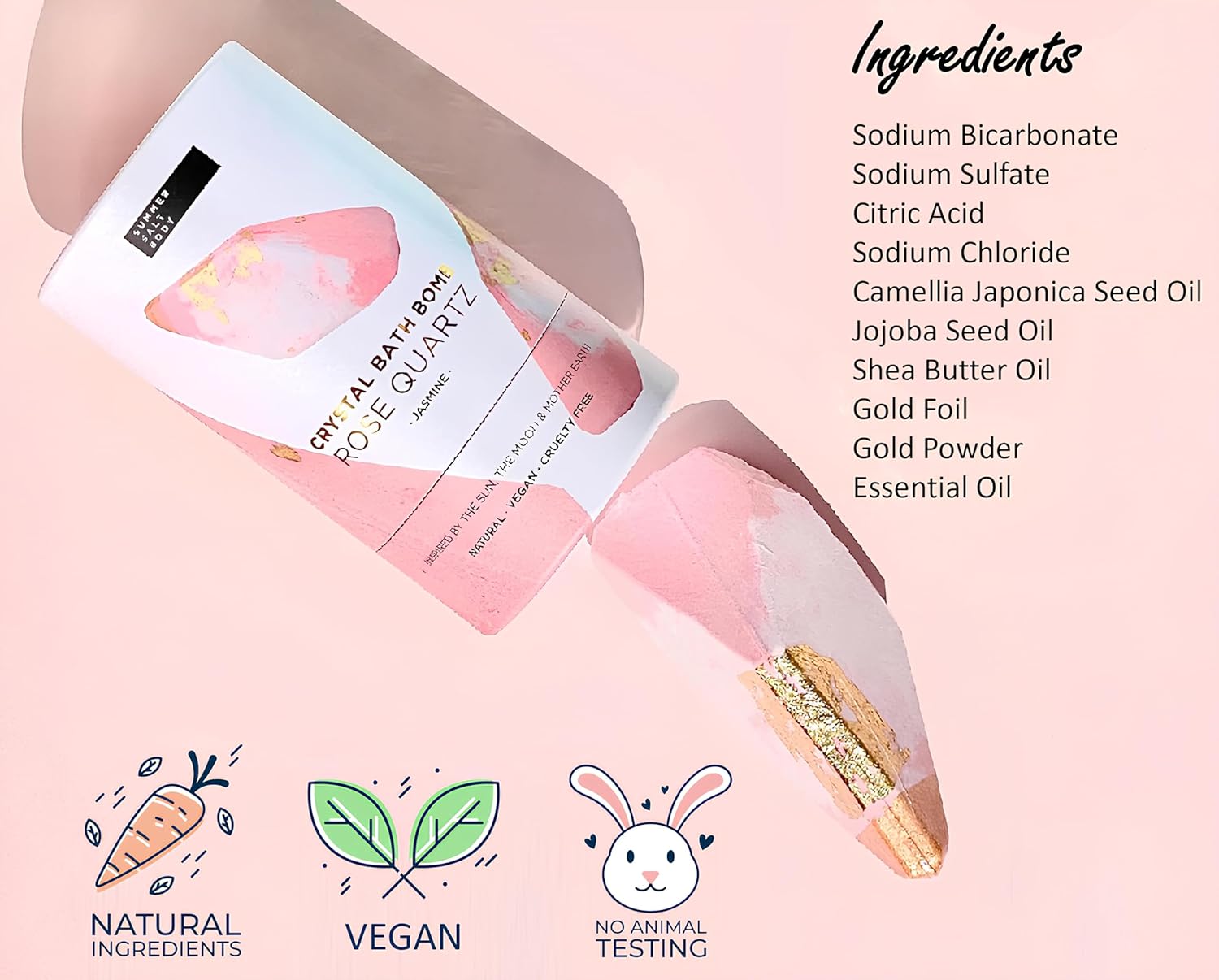 Summer Salt Body – Luxury Crystal Bath Bombs from Australia, Christmas or Birthday Gifts for Women and Men (Rose Quartz Jasmine)