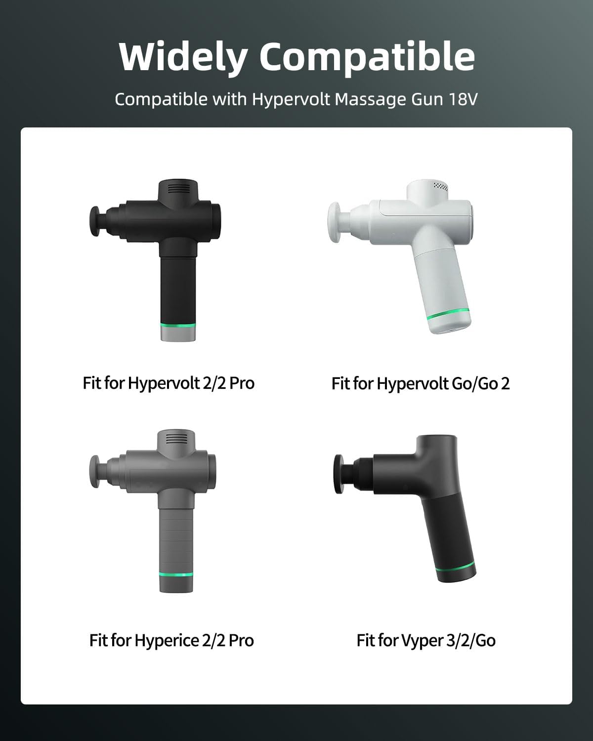Compatible with Hypervolt 2 / 2 ProCompatible with Hypervolt Go / Go 2Compatible with Hyperice Vyper 3 / 2 / Go