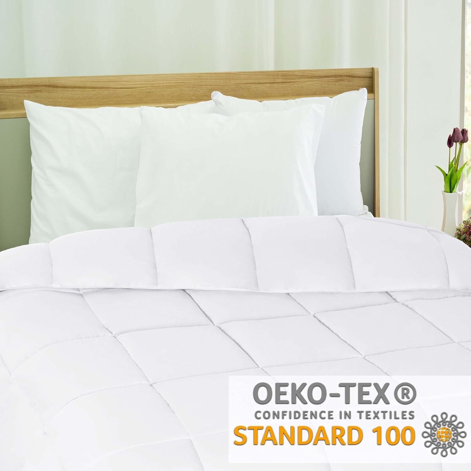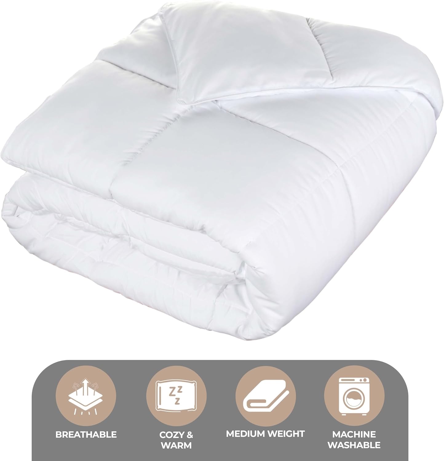 Superior Brushed Microfiber Solid Comforter, Down Alternative Bedding, Reversible, Medium Weight, Fluffy, Decorative, Duvet Insert, Oversized Blanket, Box Quilt Design, King, White