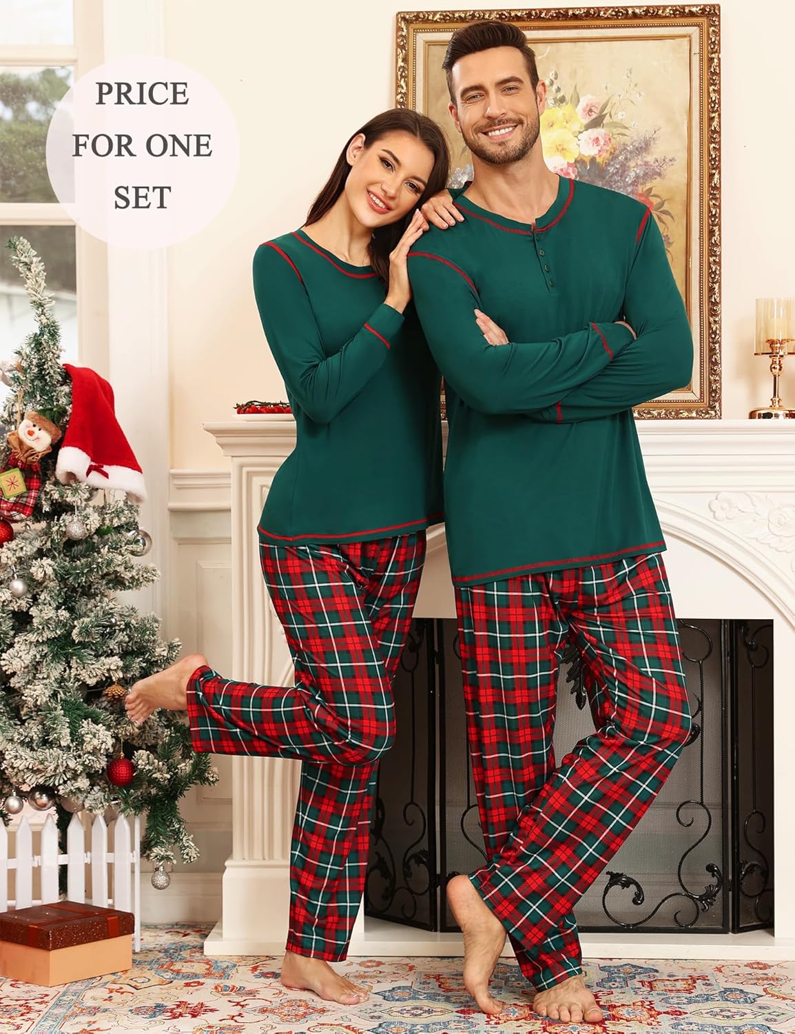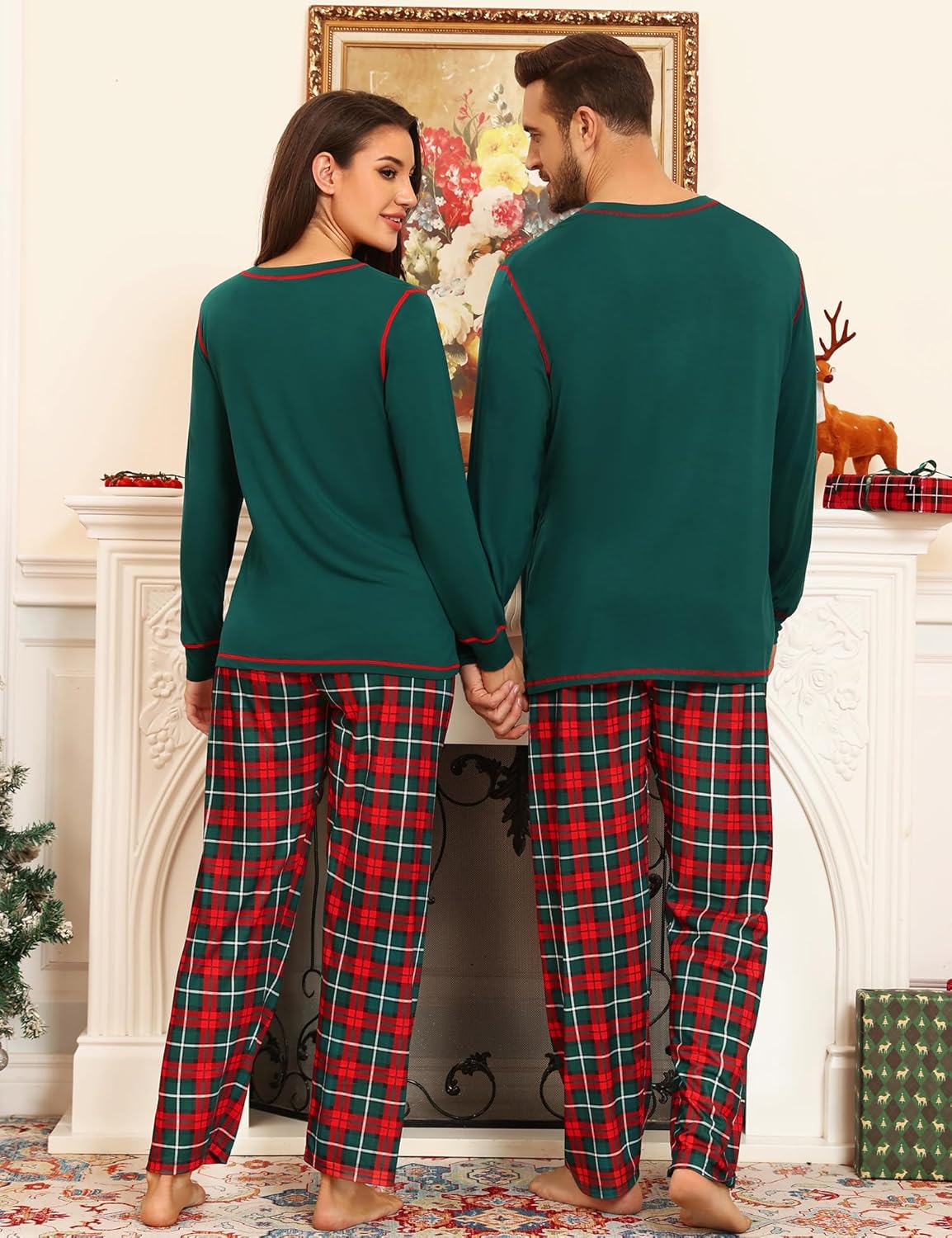 SWOMOG Couple Christmas Pajamas MEN & WOMEN Pjs Long Sleeve Top & Plaid Bottom Soft Sleepwear Loungewear