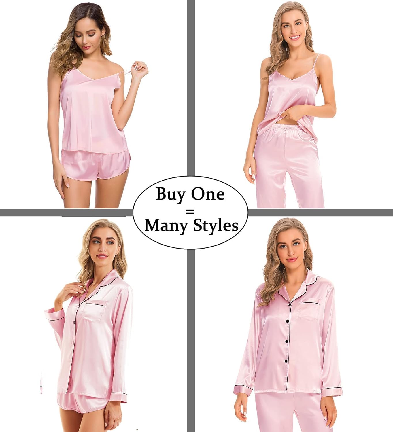 Our 4 pcs satin pjs are suitable for all seasons, you can match these sleepwear in different way to meet your needs in different temperature.
