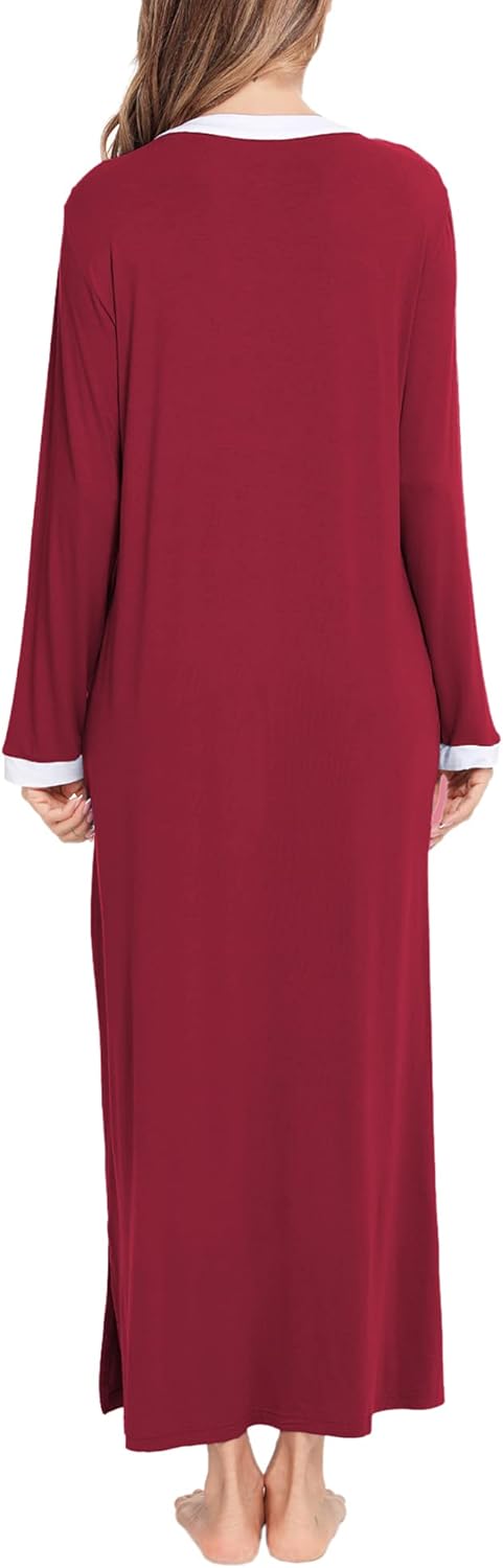 SWOMOG Womens Nightgown Long Sleeve Sleep Shirts Oversized Sleep Dress Long Soft Housecoat With Pockets