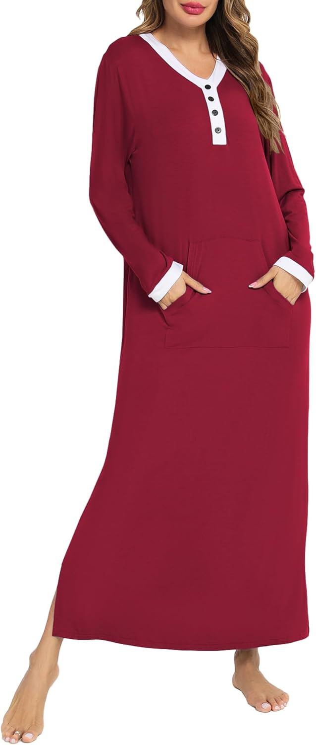 Modal Comfy Sleep Shirt Long Sleeve Nightgown Lightweight Henley Nightshirt