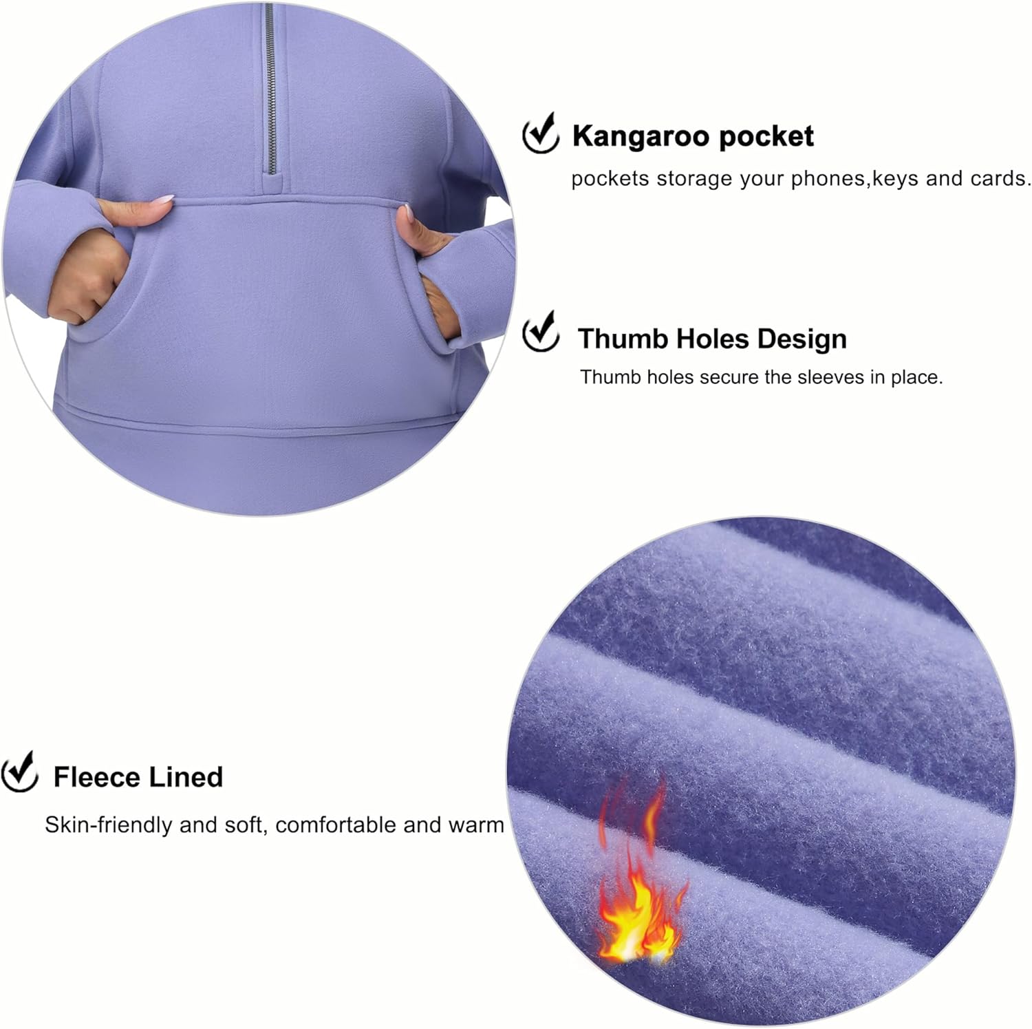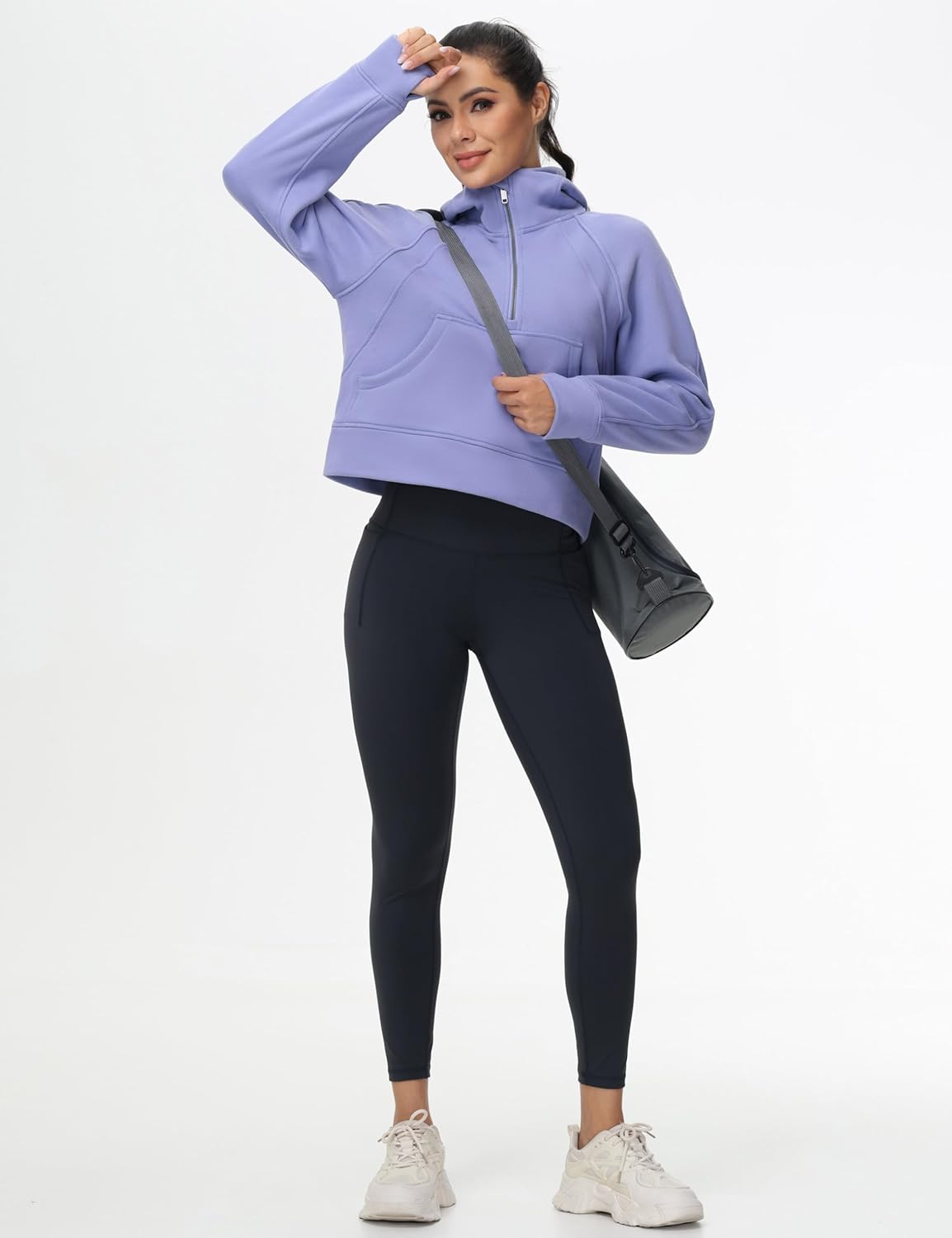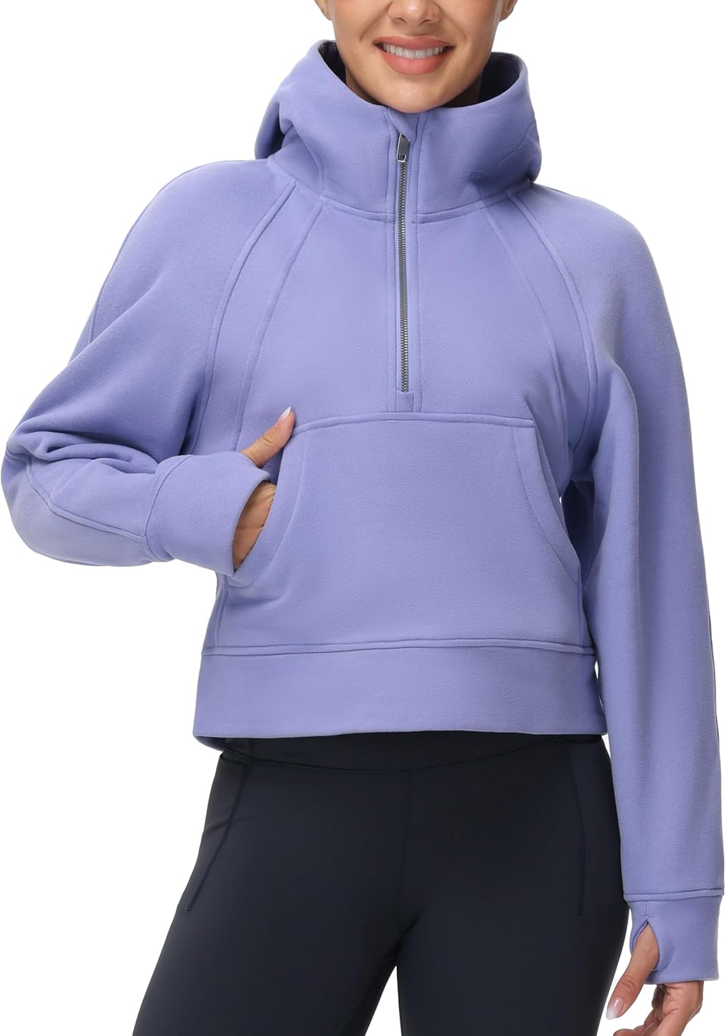 THE GYM PEOPLE Womens’ Hoodies Half Zip Long Sleeve Fleece Crop Pullover Sweatshirts with Pockets Thumb Hole