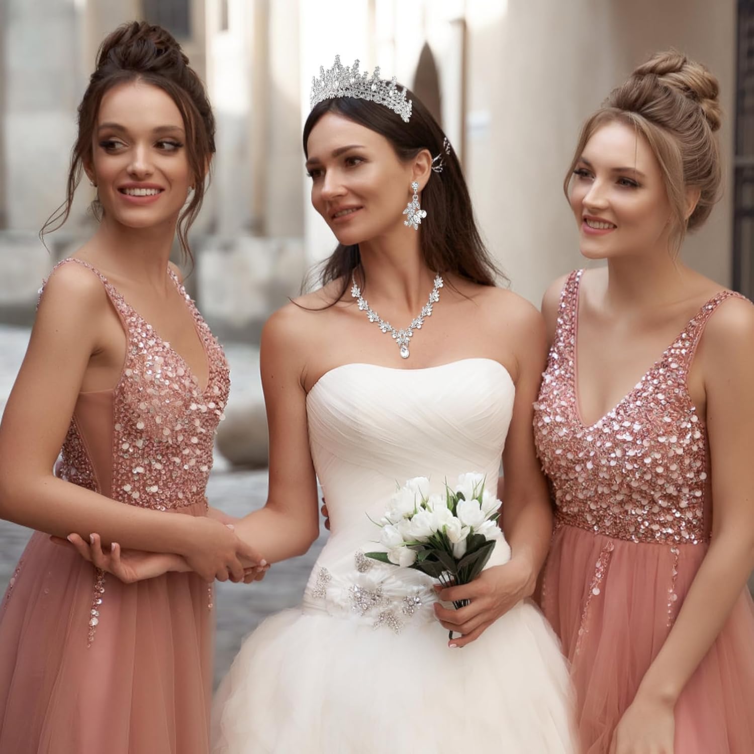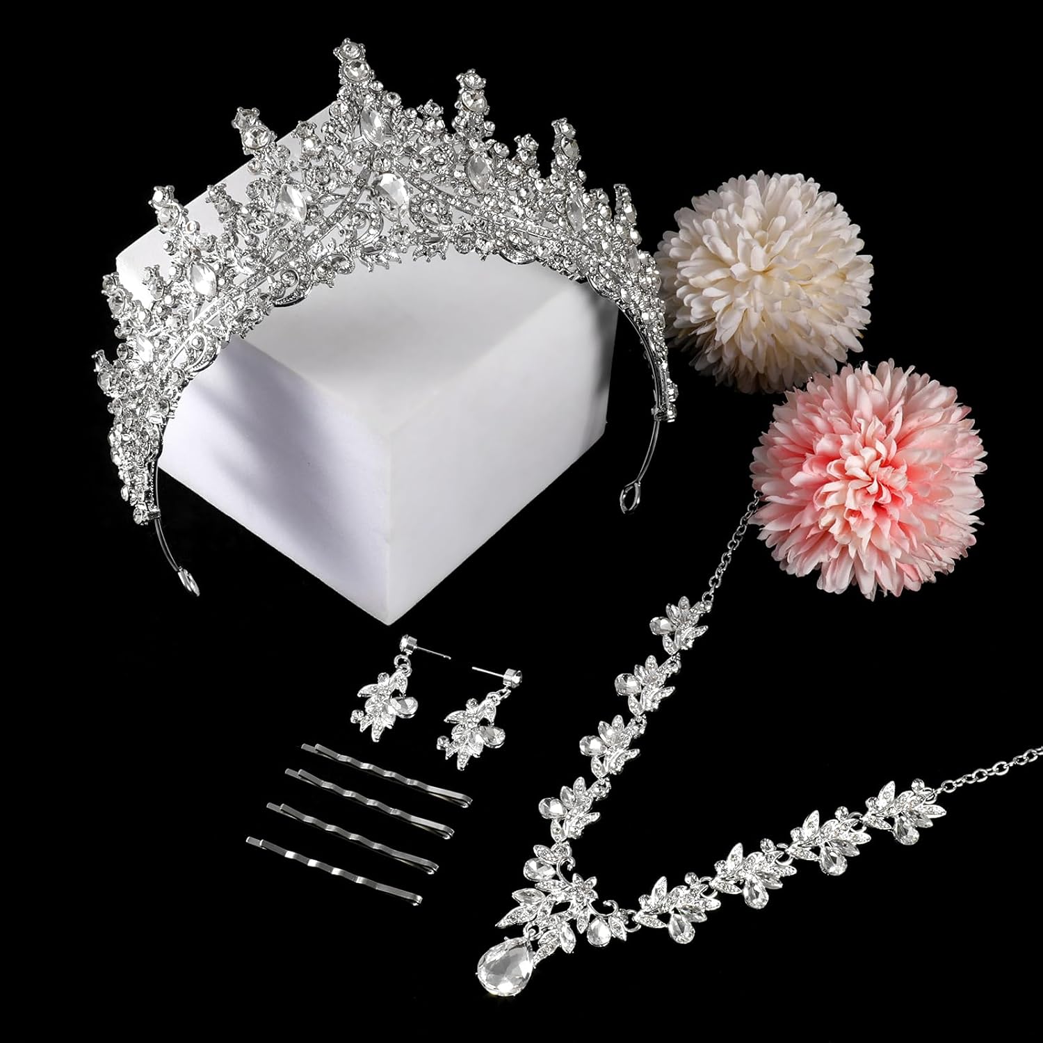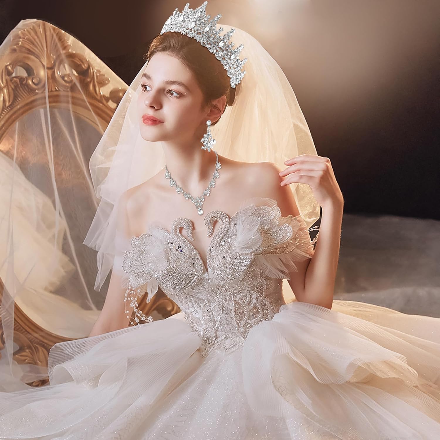 Tiaras and Crowns for Women Wedding jewelry Sets for Crystal Brides Elegant Rhinestone Necklace and Earring Set Headband Hair Prom Formal Party