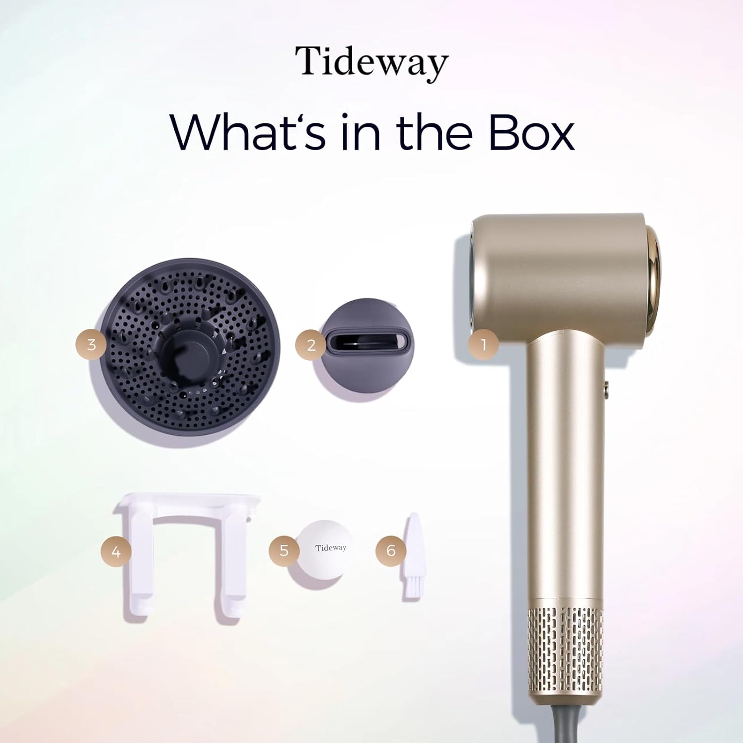 Tideway Hair Dryer, Blow Dryer with Diffuser High-Speed Plasma Ionic Low Noise for Fast Drying, Travel Hair Dryer for Women and Man, Curly/Wavy & Long/Thick Color-Treated Hair H11