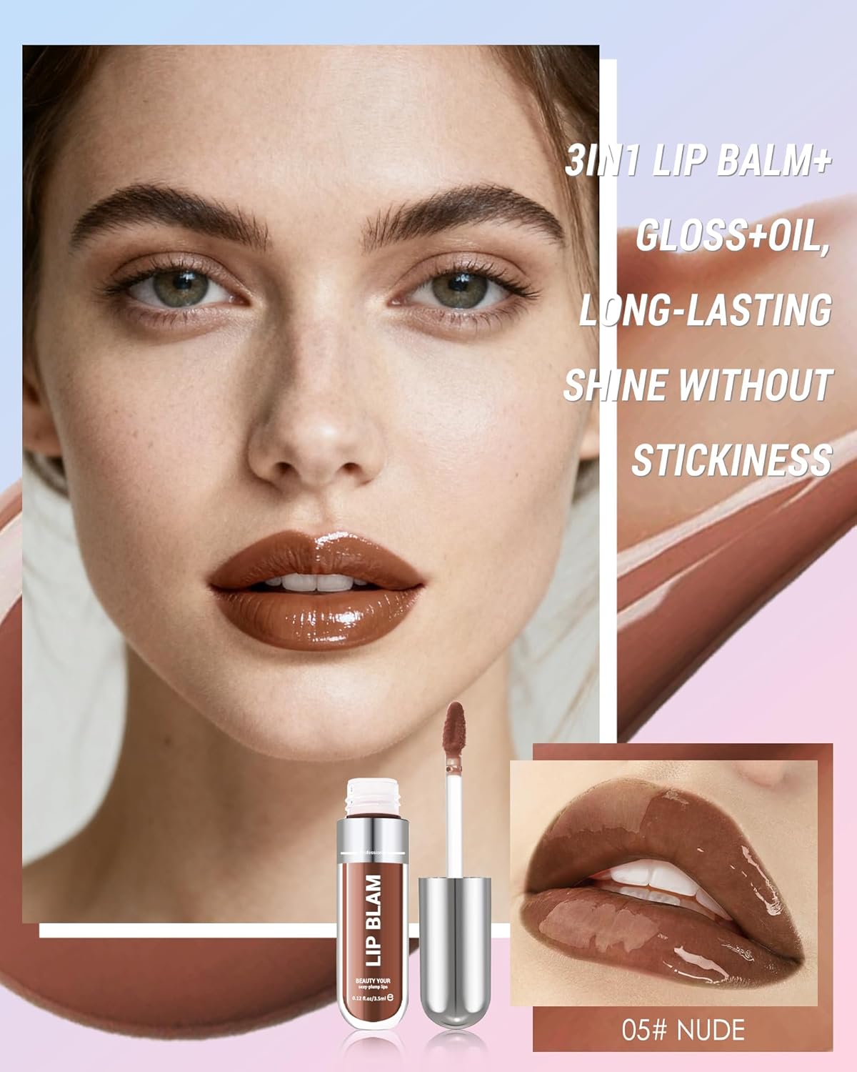Tinted Lip Gloss Oil, Nude Brown Hydrating Lip Tint Stain, Sheer Lip Treatment Moisturizer, Moisturizing Lip Tint Balm Lipstick Lipgloss, Glow Reviver Lips Care Oil, Christmas Makeup Gift for Women-05