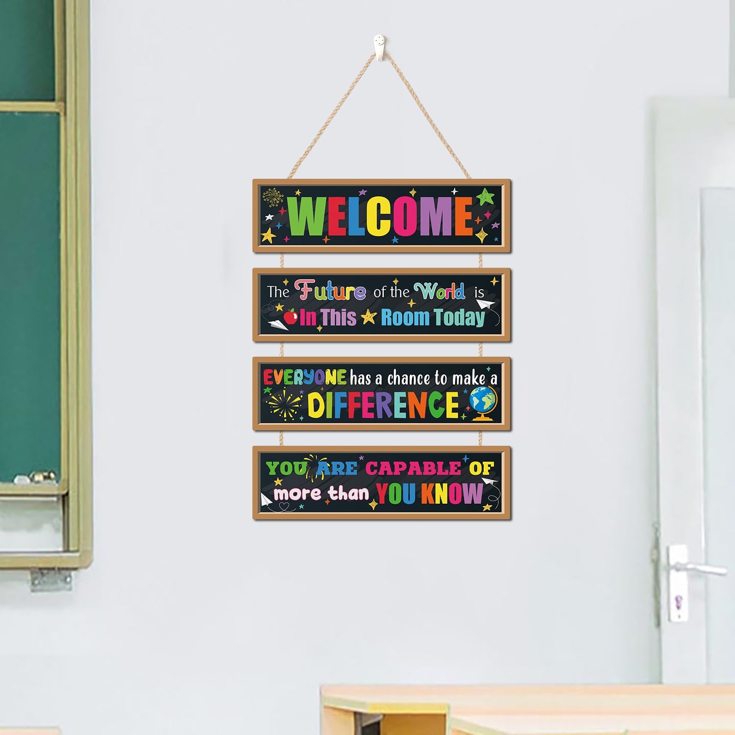 TOARTi 4Pcs Welcome to Classroom Wooden Door Sign,Motivational Saying Wood Hanging,Colorful Classroom Wall Hanging,Inspirational Educational Quote Hanger for Elementary Middle School