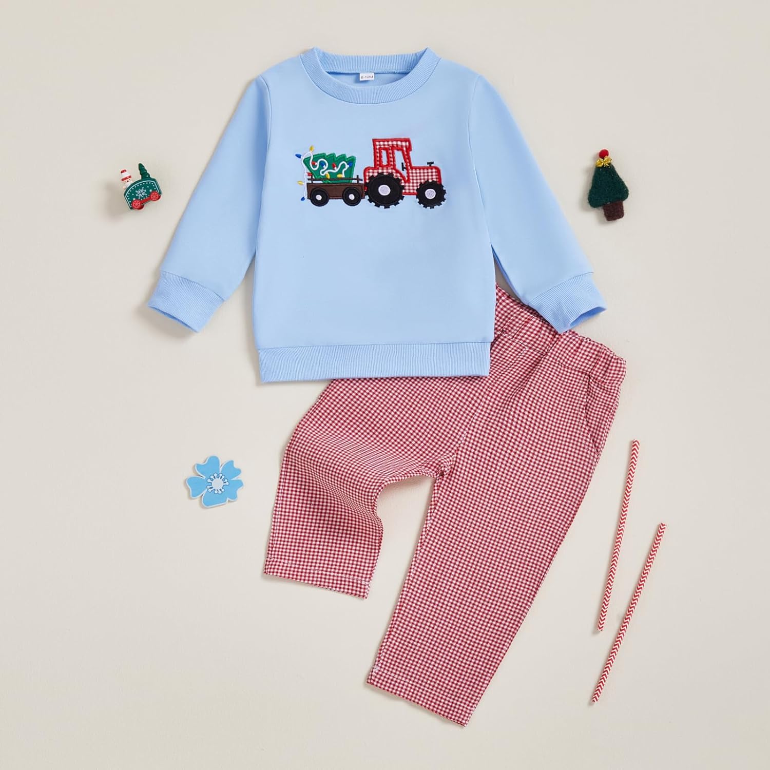 Toddler Baby Boy Christmas Outfit Cute Infant Truck Tree Sweatshirt Pants Set Little Kids Fall Winter Warm Clothes
