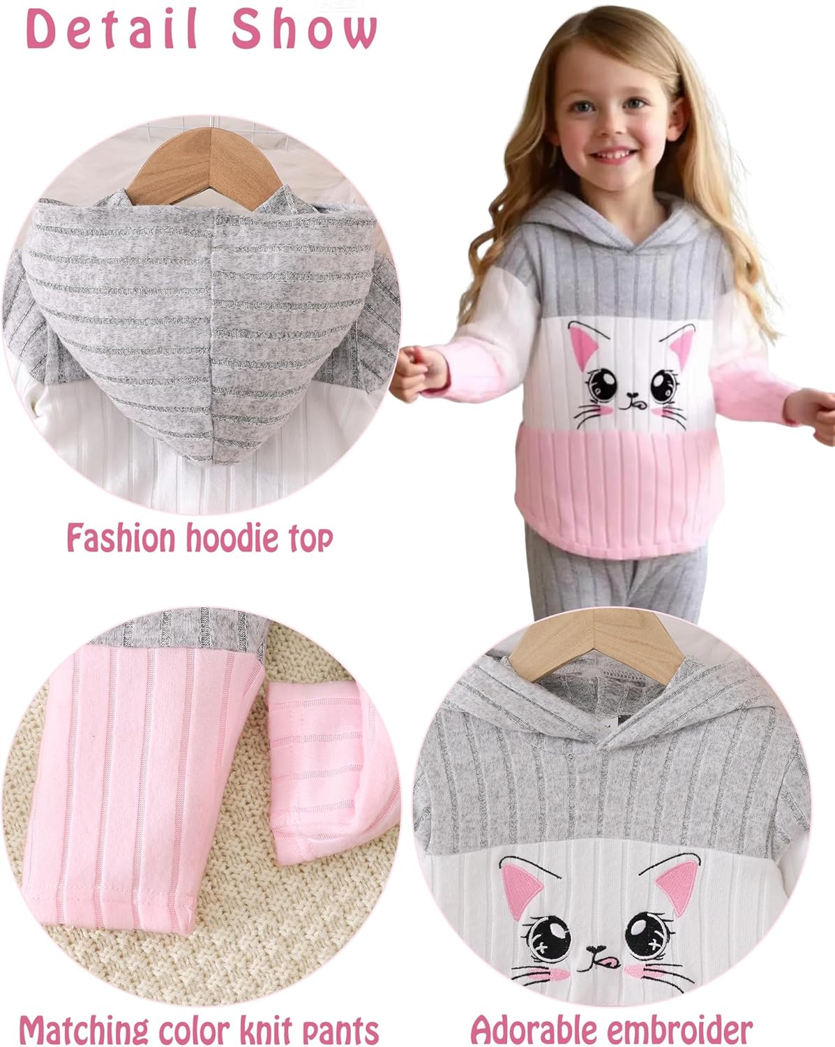 Toddler Baby Girl Clothes Fall Winter Outfits Long Sleeves Hoodie Top Sweatpants Set Sweatsuit 2Pcs