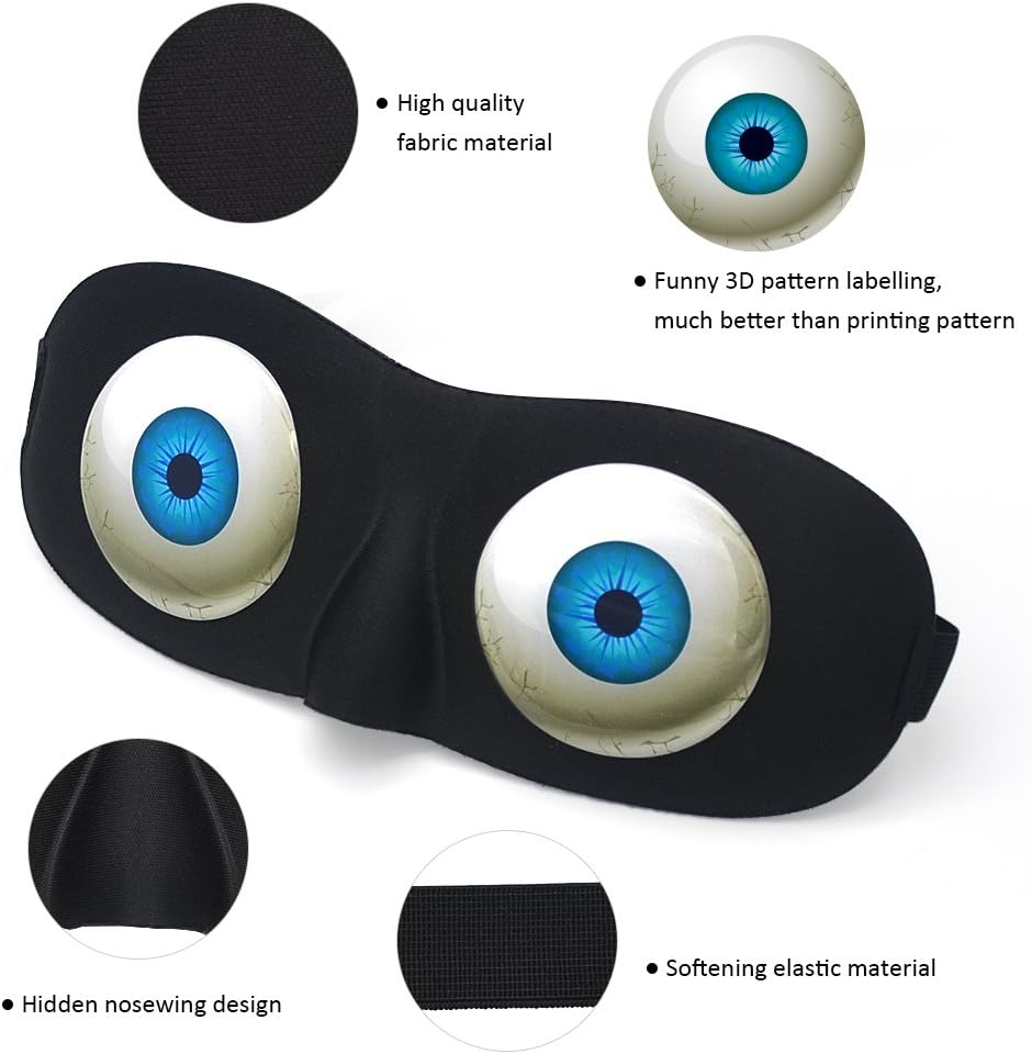 Tphon Eye Sleep Mask Funny Blindfold for Women Men Kid, Upgraded 3D Contoured 100% Blackout Sleeping Mask with Adjustable Strap, Soft Night Blindfold Eye Shades for Travel Naps Shift Works Games