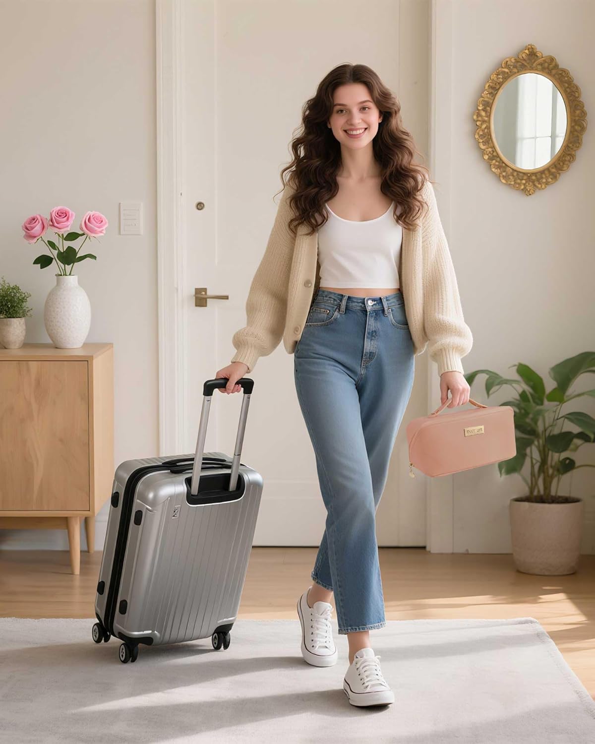 【THE PERFECT TRAVEL COMPANION & GIFT】More than just a makeup bag, it’s your ultimate travel essentials, this make up bag doubles as a toiletry bag, purse, or bathroom organizer, making it perfect for business trips, vacations, and outdoor activities. Its sleek, functional design makes it a fantastic and thoughtful gift choice for wives, daughters, friends, or any travel-loving woman