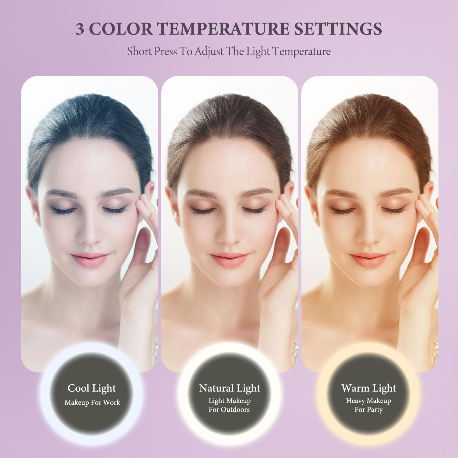 【Smart 3- color Led Lighted Mirror】Cosmetic case includes an 7.9″*6.7″ full-screen light mirror.Long press the switch can adjust light brightness from 0% to 100%, and gently touching the switch can easily adjust color temperature between cold light, natural light, and warm light, making your face reflect skin condition and facial details Whether you are painting sophisticated party makeup, commuting makeup, or daily makeup.