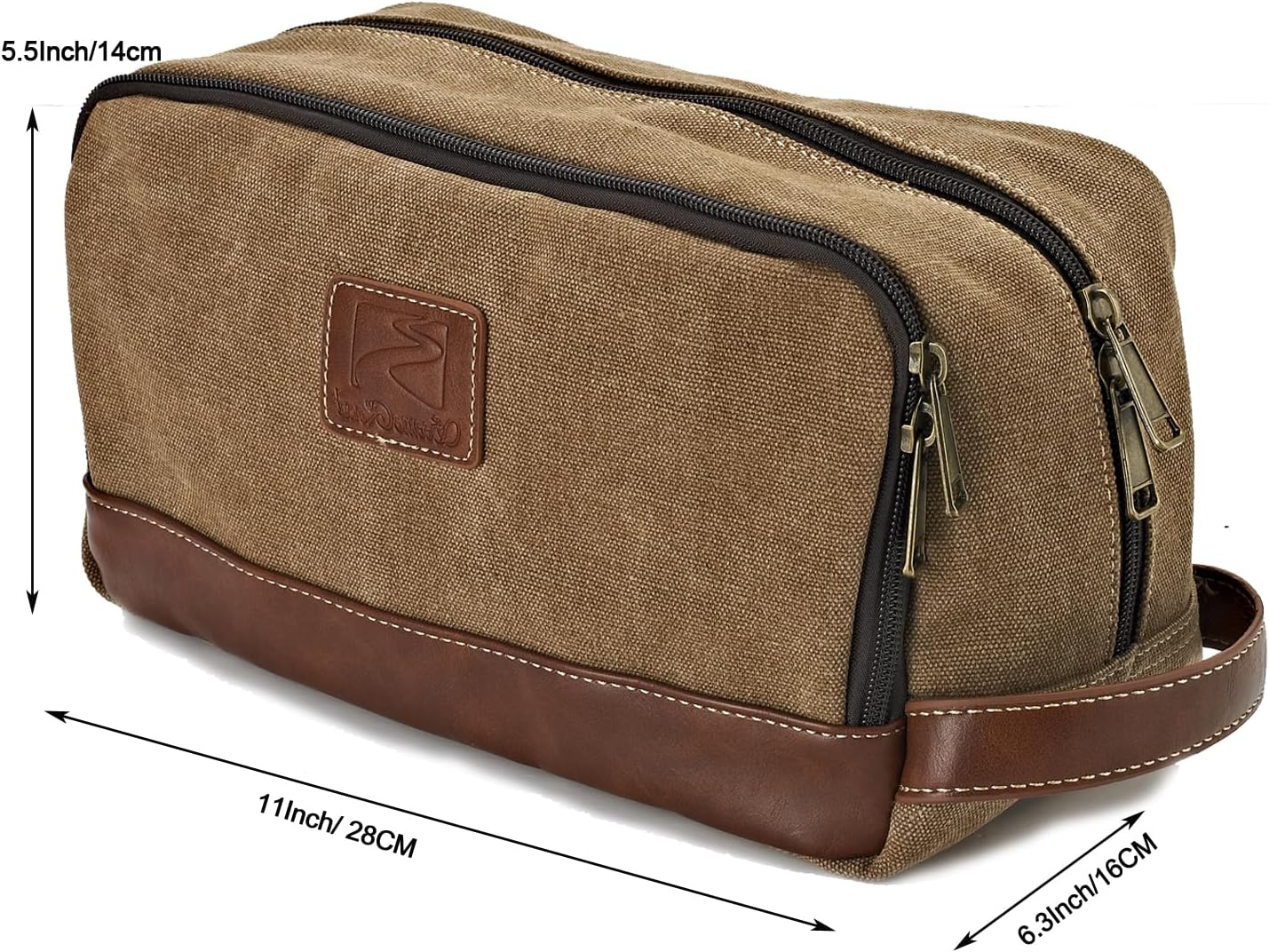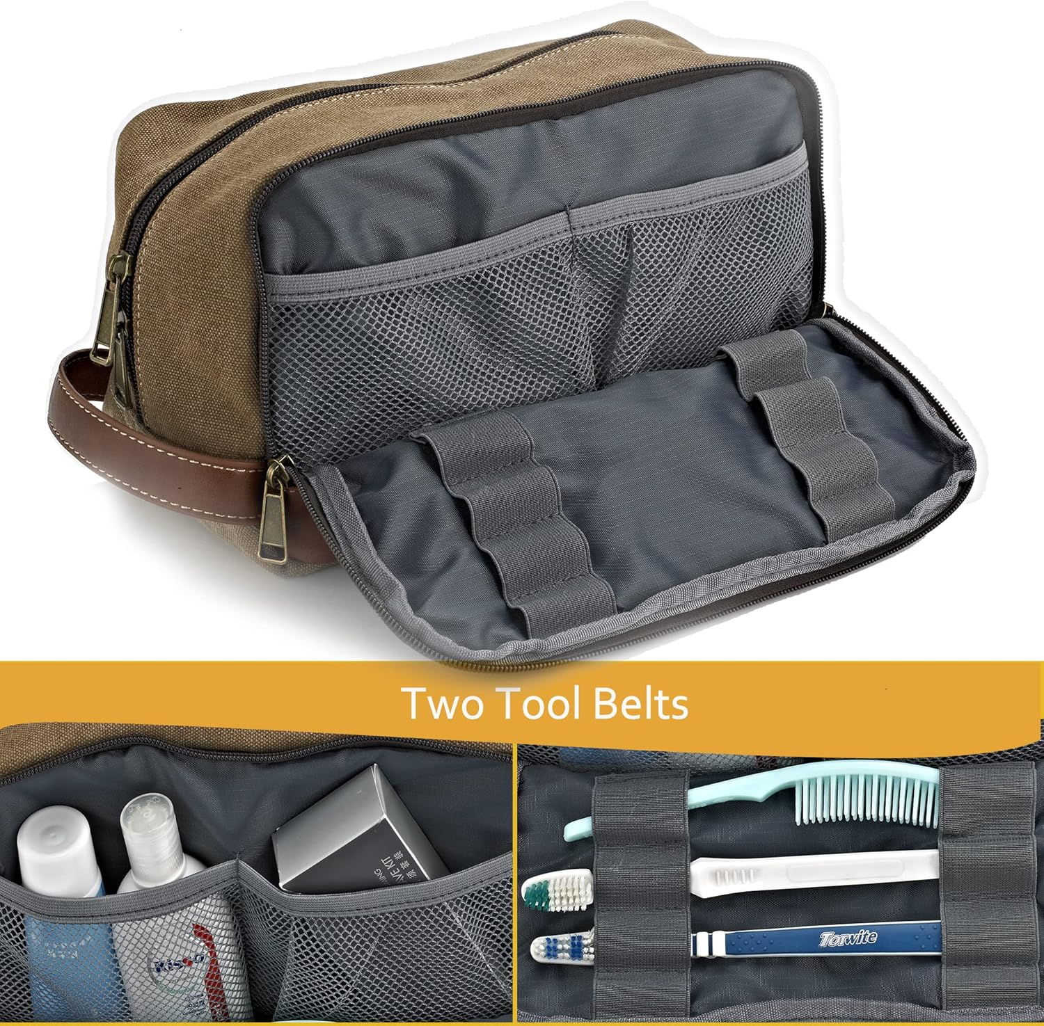 Travel Toiletry Bag for Men and Women, Canvas Toiletry Organizer Water-Resistant Vegan Leather, Hanging Dopp Kit Shaving Bag for Toiletries Accessories