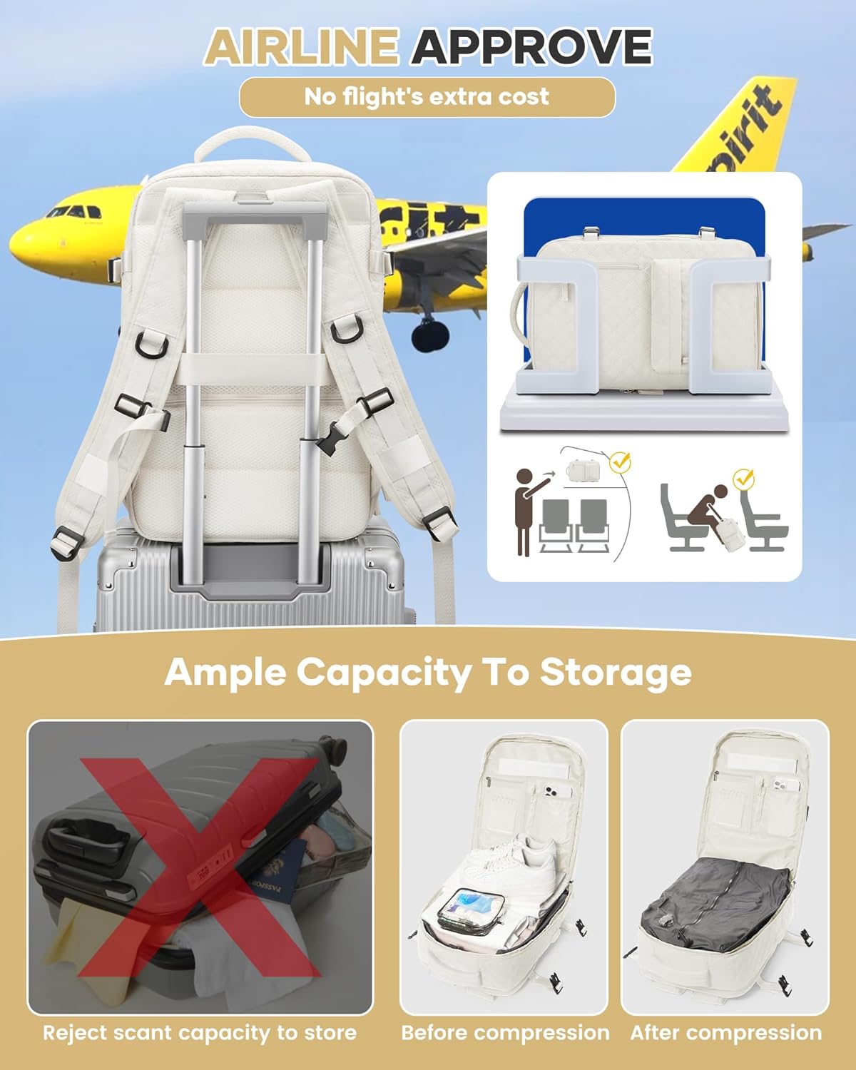 📣Vacuum Compression with Air Pump – This Vacuum Backpack features vacuum compression technology with AirPump.Simply attach and press to instantly compress multiple items of clothing, saving up to 50% space in seconds. The airtight seal keeps items compact for days, perfect for short-term business trips or traveling.