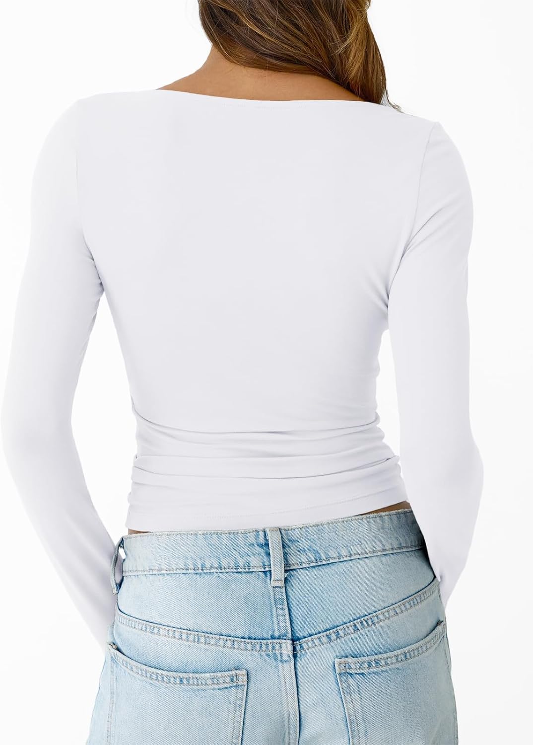 Trendy Queen Womens Long Sleeve T Shirts 2025 Fall Workout Square Neck Going Out Tops Cute Basic Tee Y2k Fitted Clothes