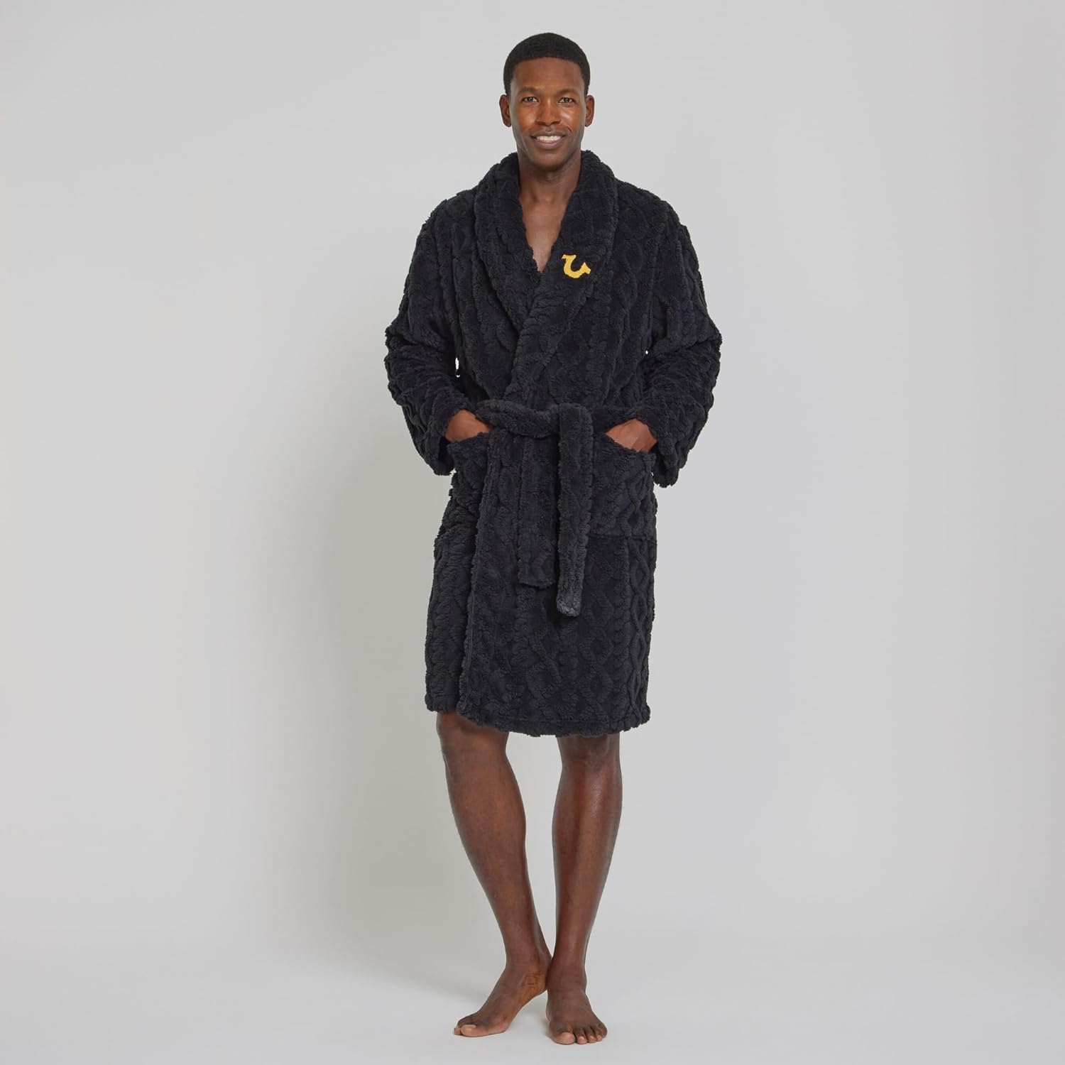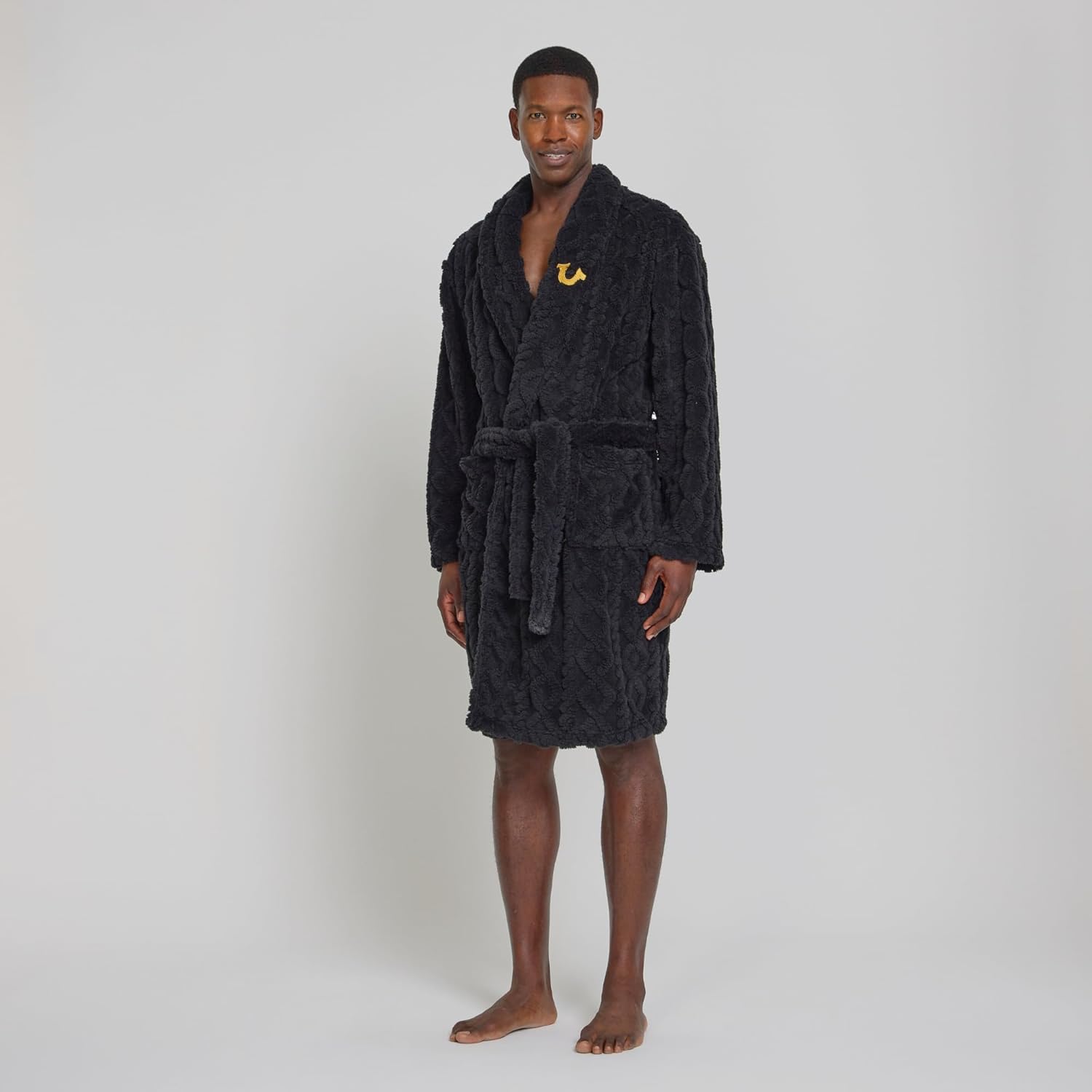True Religion Mens Bath Robe for Men Soft Plush Shower Robe with Pockets and Tie Waist