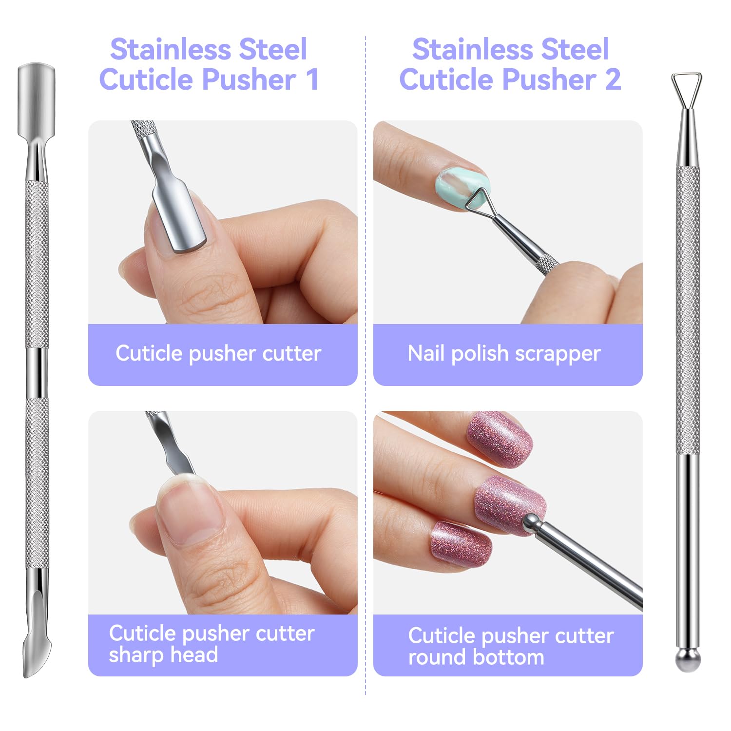 Essential Nail Tools: The triangular cuticle scraper efficiently removes dead skin, reaching even the most delicate areas without damaging the nail surface. The dual-ended cuticle pusher is perfect for cleaning cuticles and removing residue, maintaining nail health and cleanliness. 100/180 grit can trim your nail to desired shape and helps to remove nail gel. 1000 grit green side can refine nail surface. 4000 grit white side helps to smooth nail surface. Nail brush to clean any nail dust
