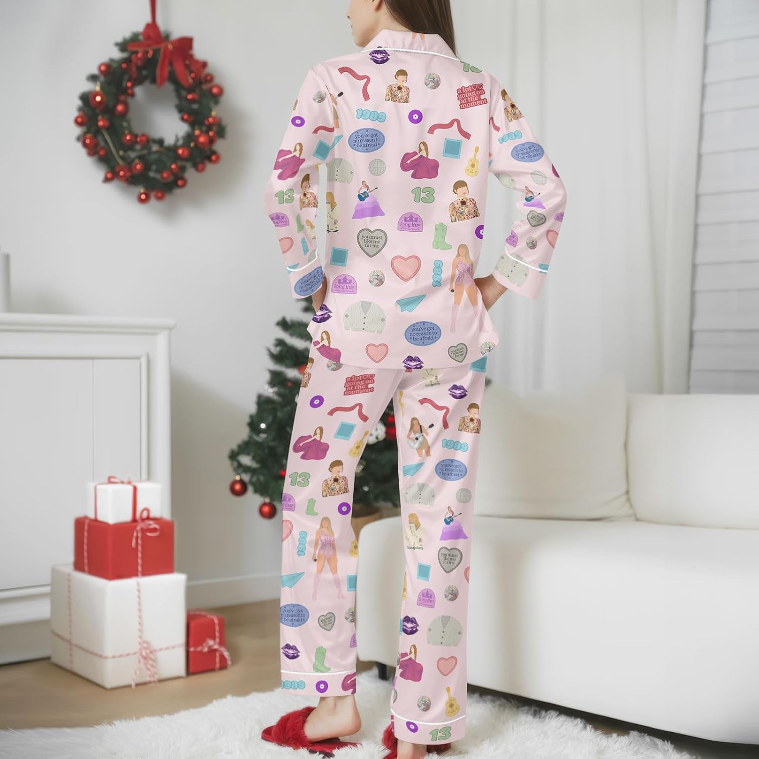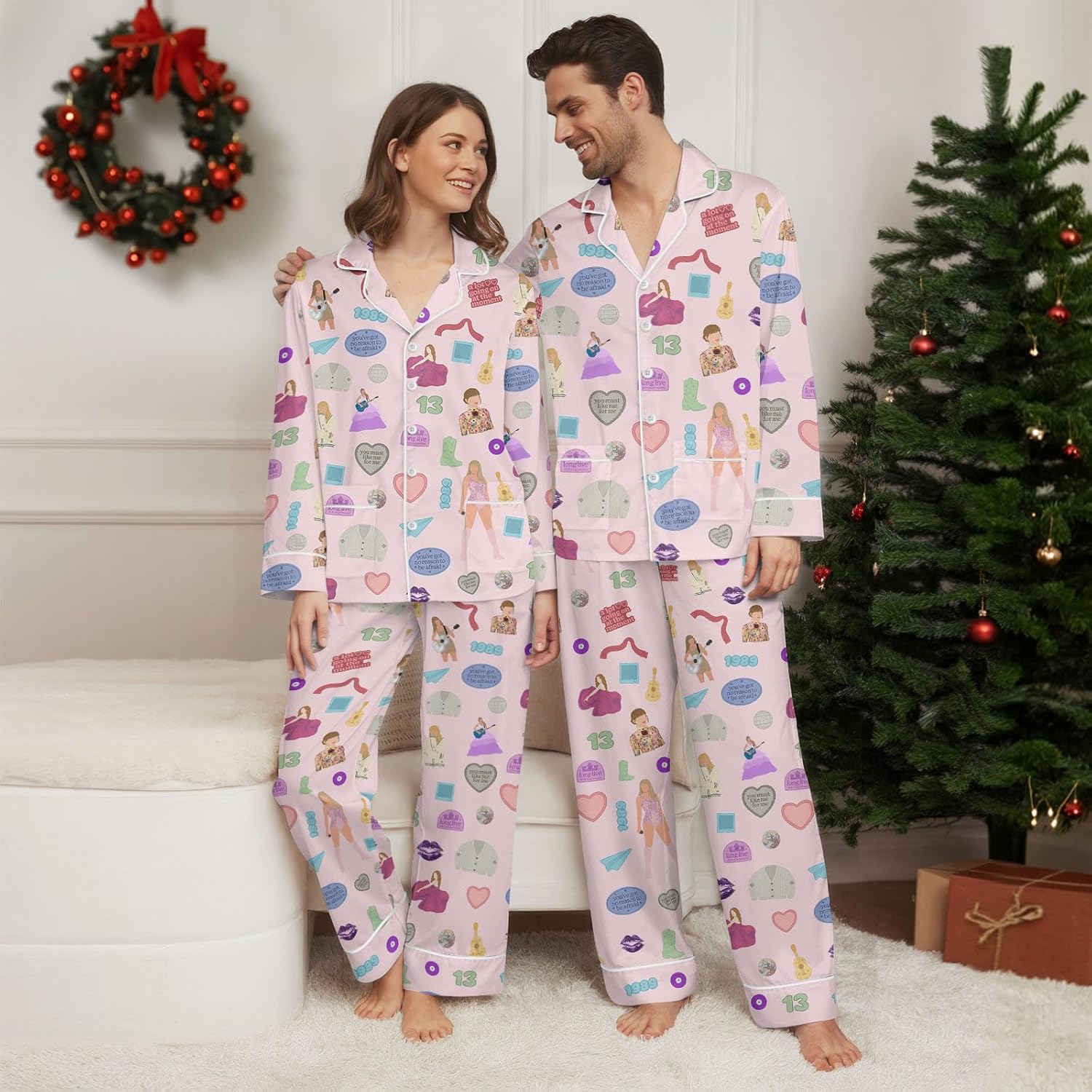 Unisex Pajama Set, Long Sleeve Button-Up Top and Pants, Soft Stretchy Sleepwear for Men and Women