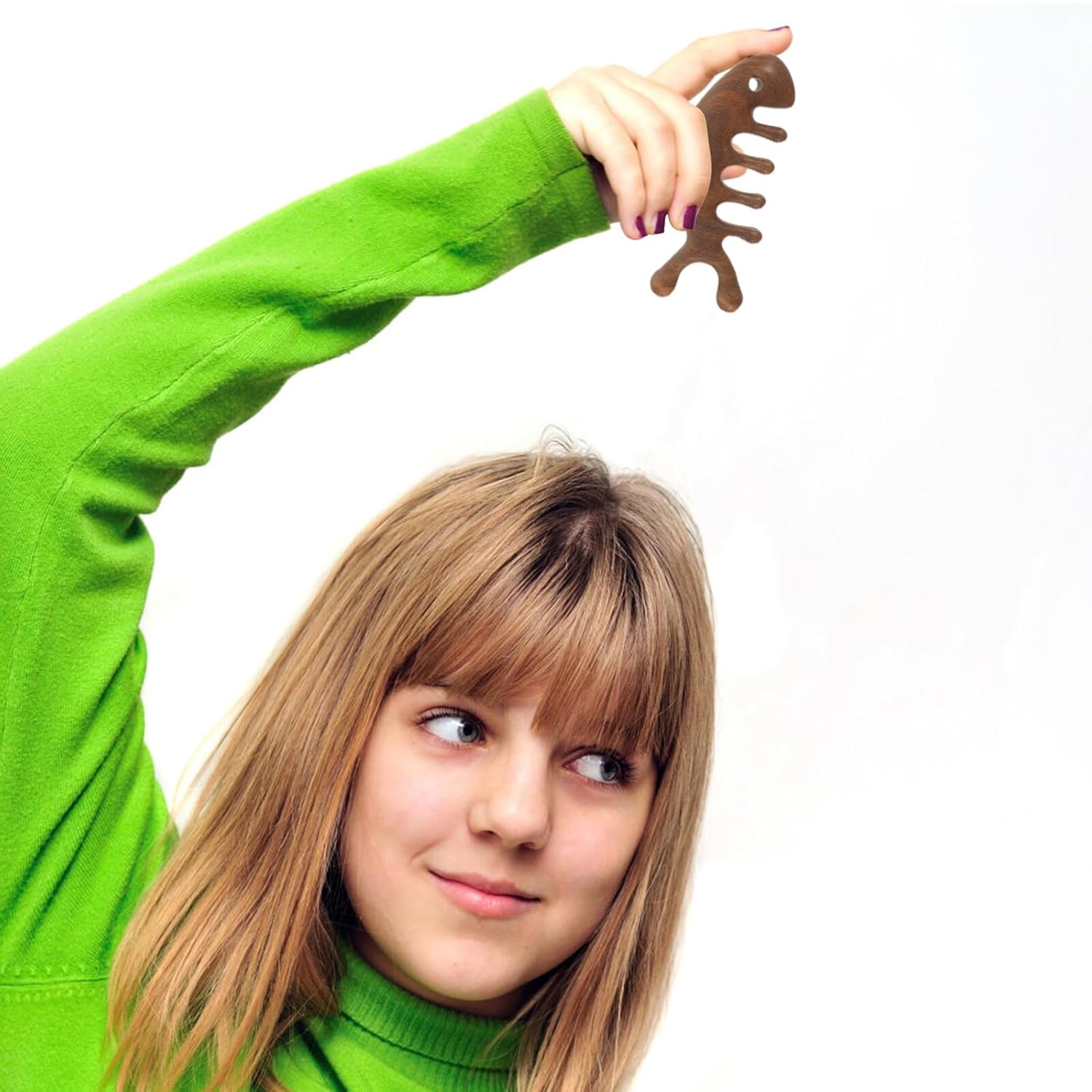 -Shaped into a fish, fits into your palm, easy to hold and apply a proper force hair massager scalp comb.